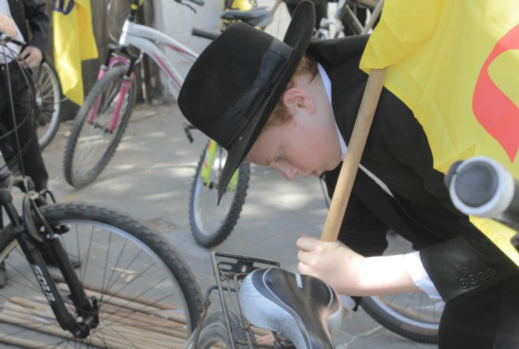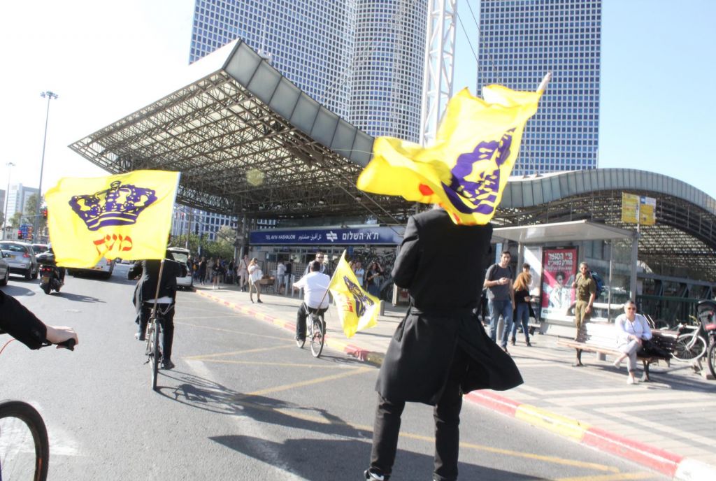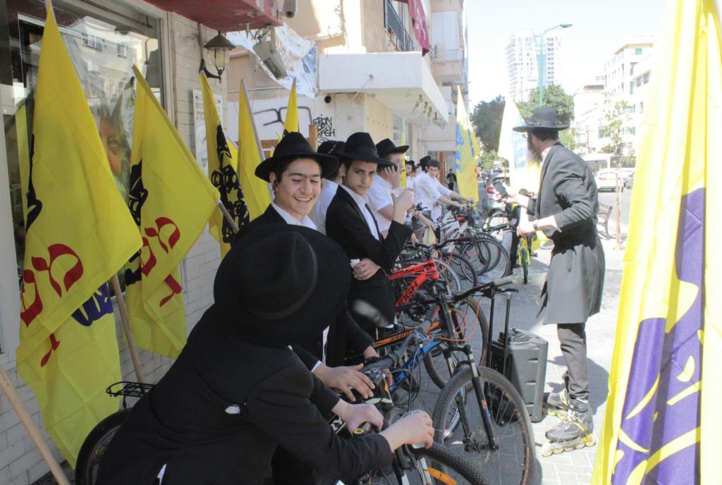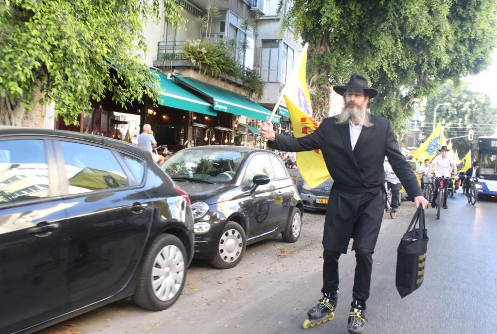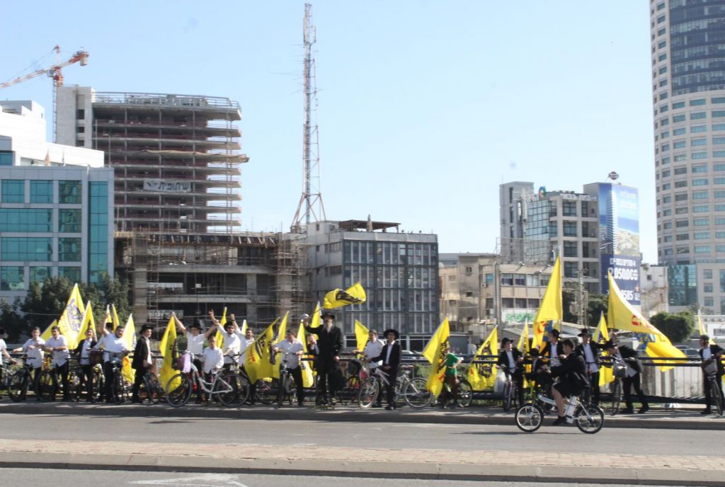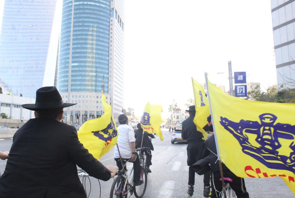 בשעות אחר הצהריים השיירה יצאה לדרך ברחובות תל אביב בהשתתפות 50 תלמידי התמימים ואנ"ש שרכבו על אופניים הנושאים בגאון דגל משיח וחומר פרסום של "בשרות הגאולה" וכמובן ערכת התפילין לזיכוי הרבים.