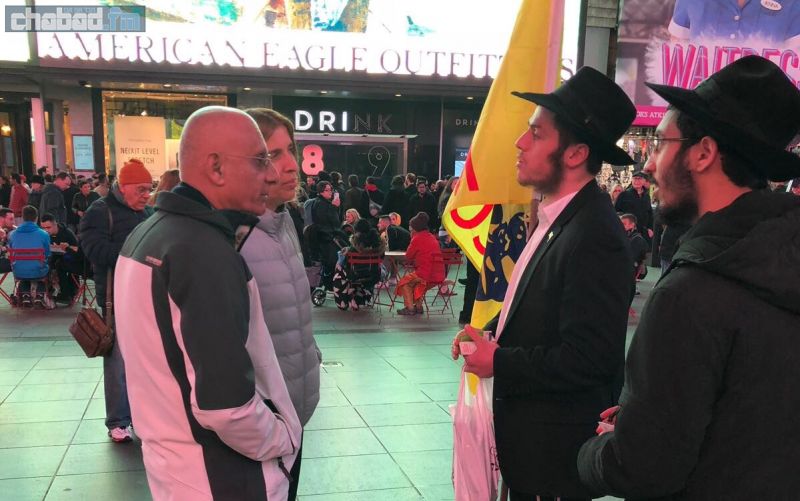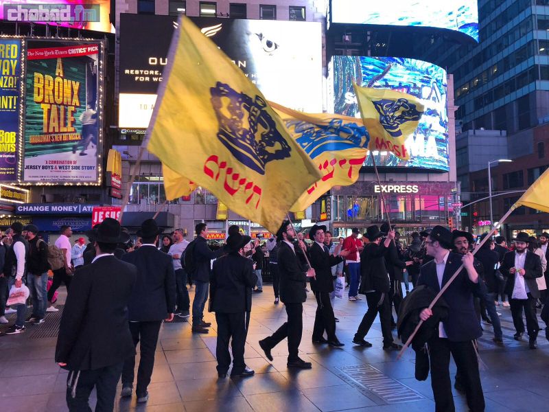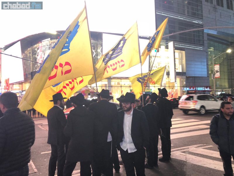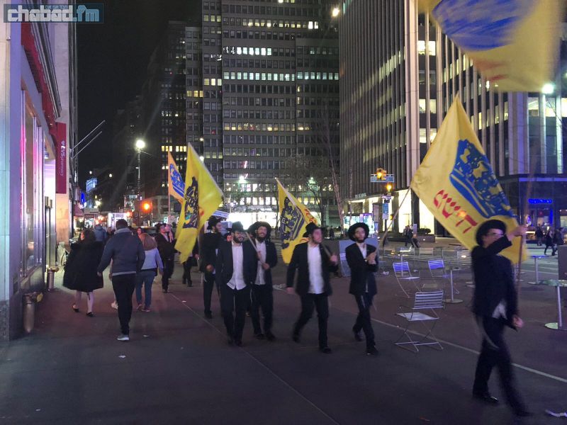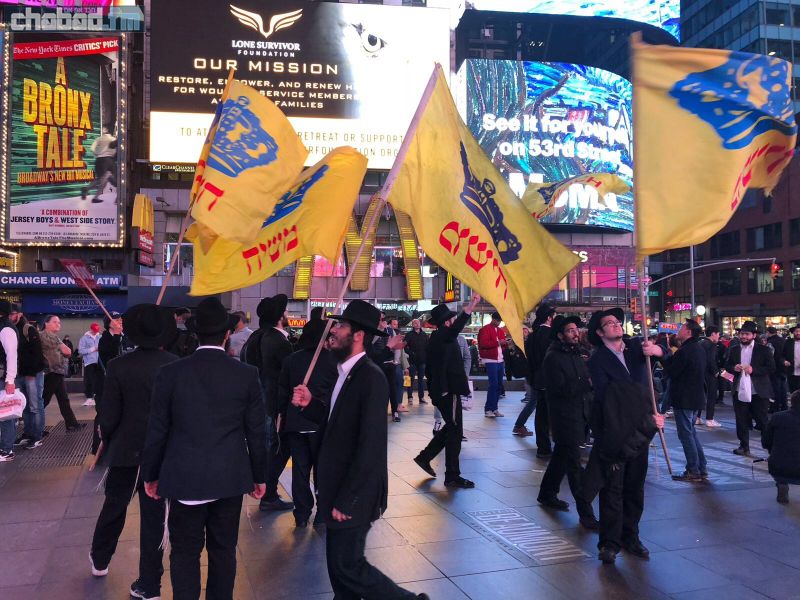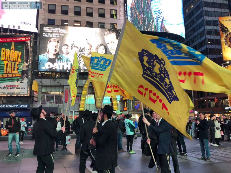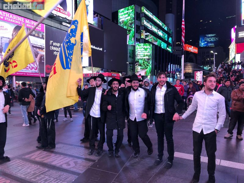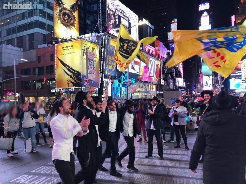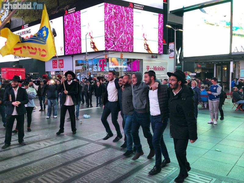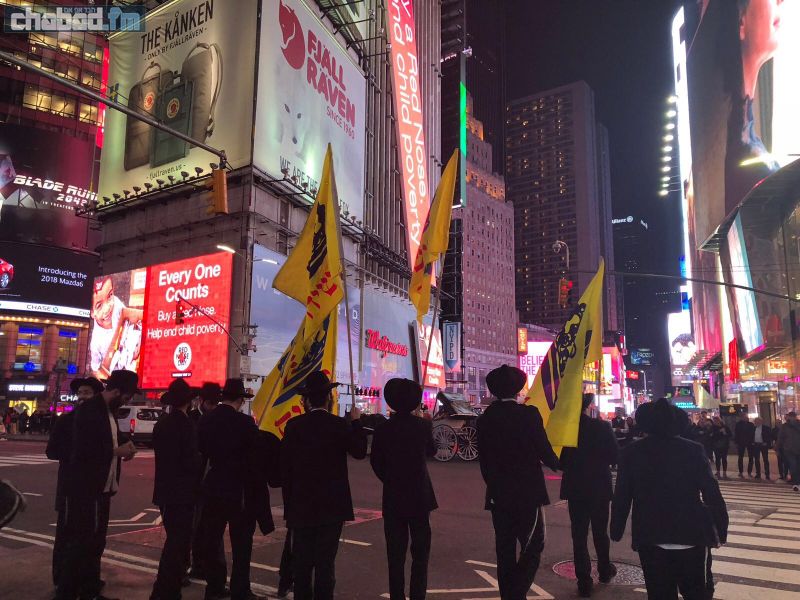 ביום ראשון בערב יצאו קבוצת בחורים נמרצים מקרב התמימים לכיכר הטיימס סקוור במרכז מנהטן, וערכו מעמד קידוש לבנה מרכזי כפי הוראתו הקדושה של כ"ק אדמו"ר מלך המשיח שליט"א.
