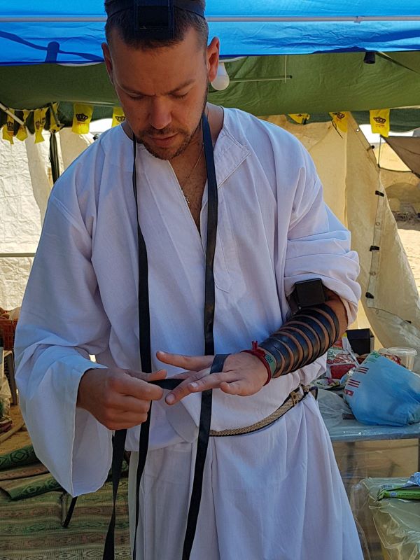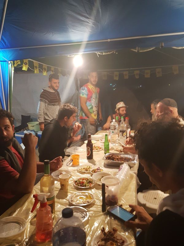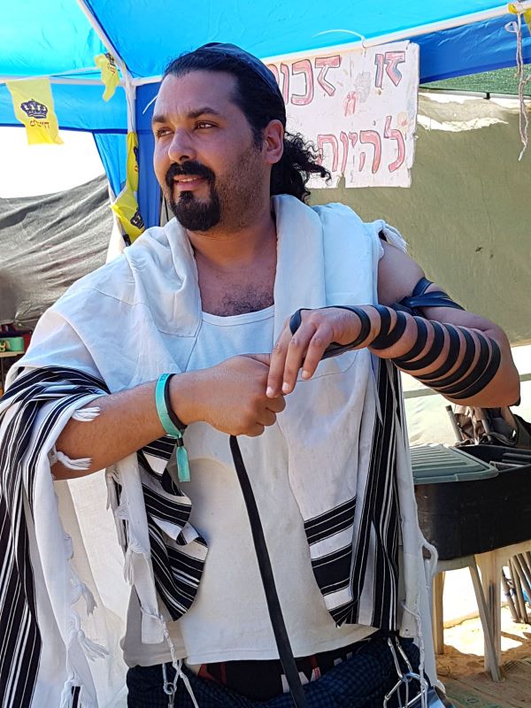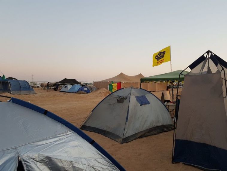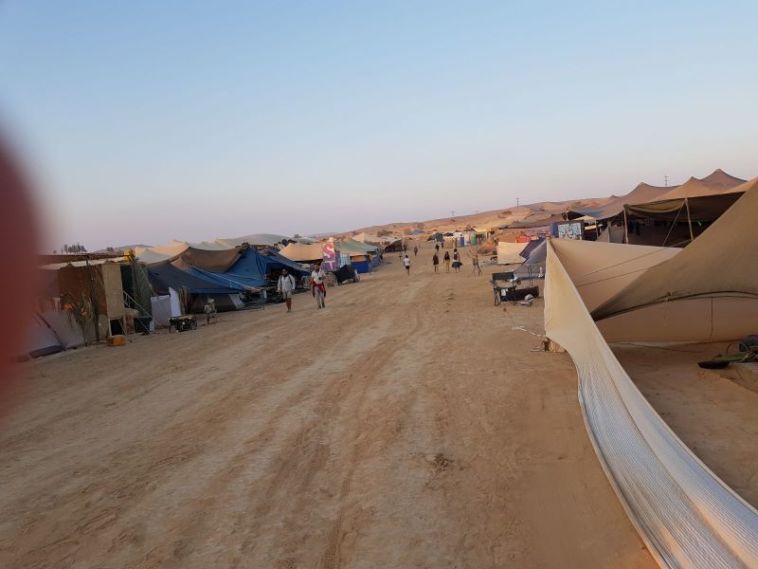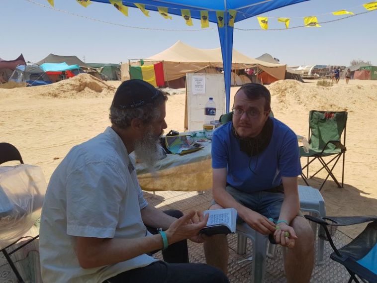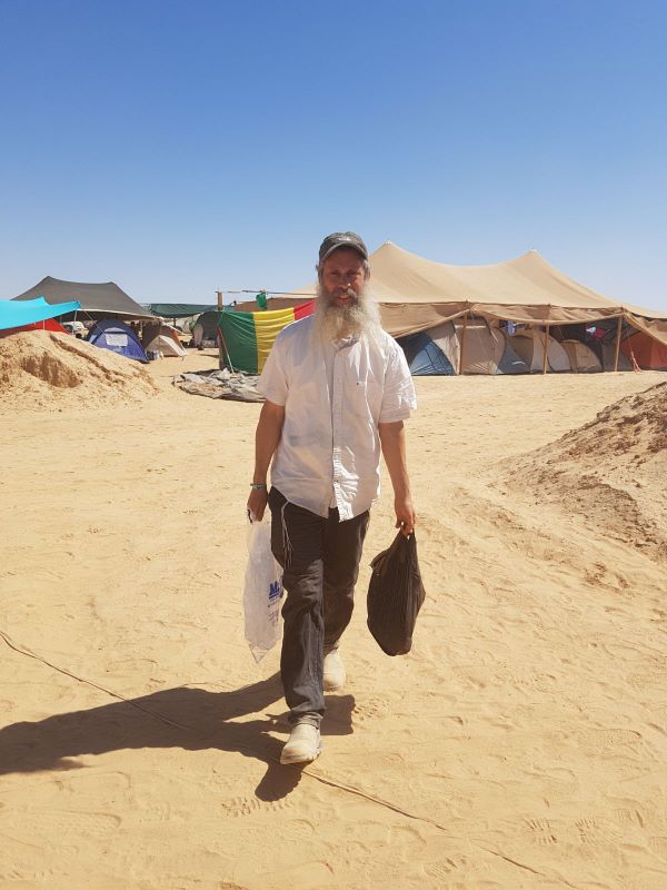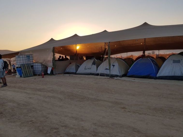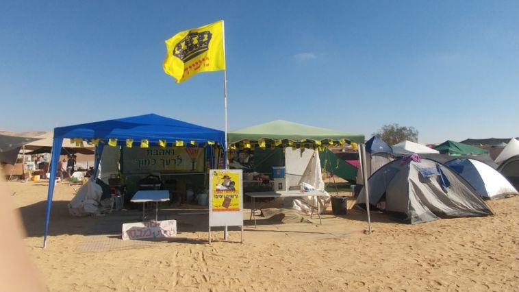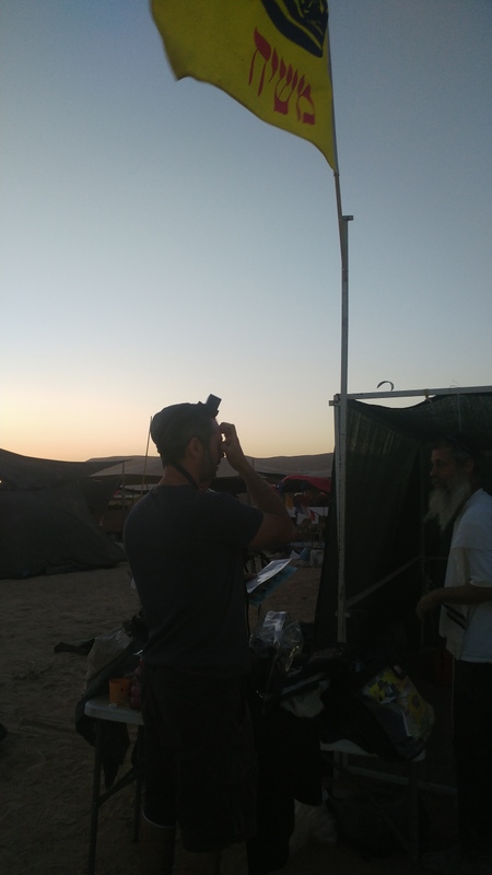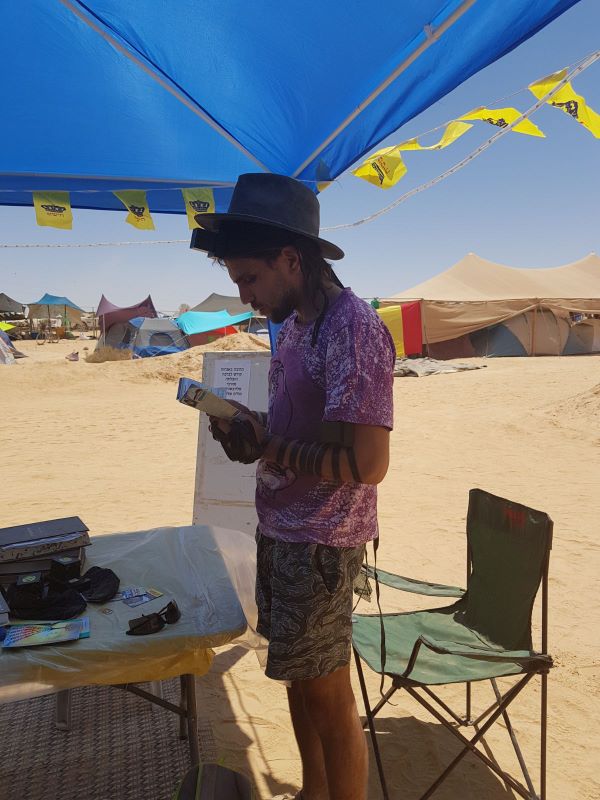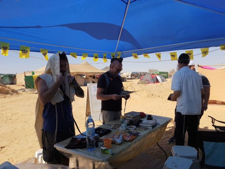 למחרת (יום חמישי) הושגו ונרכשו בניסי ניסים 4 כרטיסי כניסה דרך הפייסבוק מאנשים שרצו לבטל את בואם ברגע האחרון. ביום ראשון הועמס הציוד על הרכבים וביום שני לאחר קניות של האוכל והשתייה והכנות אחרונות יצאנו למדבר". הגענו בערב והיתה הרגשה של שליחות על טבעית. לאחר כשעתיים מצאנו מקום מספיק גדול ומתאים להקמת המתחם ולאחר לילה שלם של סחיבת הציוד פנימה הוקם המתחם. במשך שלושה ימים אנשים לא הפסיקו לפקוד את המתחם. מאות הניחו תפילין,התקיימו הרבה שיחות אשיות והסברים על חסידות משיח וגאולה.