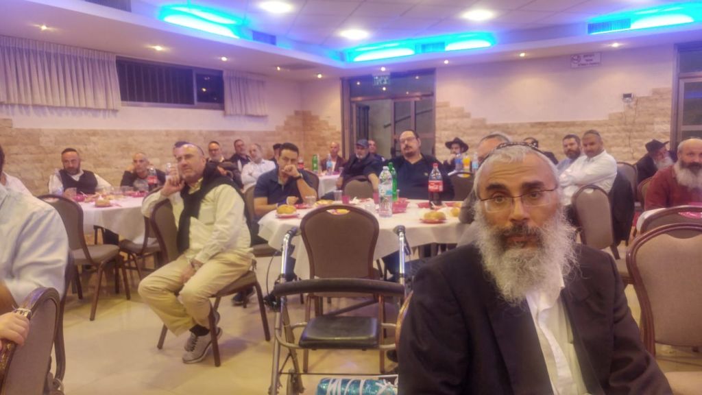 הרב ישראל מלכה, חבר מועצת הרבנות המקומית ורב השכונות מדבר בפני הקהל כשהוא מעלה זיכרונות מלימוד החסידות והתוועדויות חג הגאולה במרוקו.