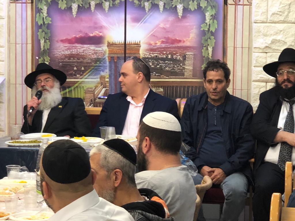 בית כנסת אור החמה ברסלב בראשות הרב רזיאל אלול שליט"א ערך סעודת מצוה והתוועדות לרגל חג החגים עם מרצה אורח - הרב טוביה דורון מקהילת חב"ד בעיר, בהשתתפות ראש העיר הנבחר, מר צביקה ברוט.
