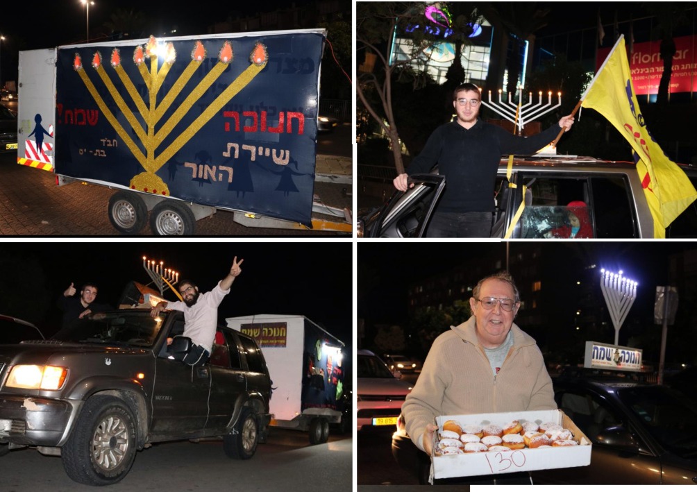 שיירת האור בבת ים עיר הגאולה, בארגון הרב חיים אטיה - גבאי בית הכנסת חב"ד רמת הנשיא, עברה אתמול, נר שמיני של חנוכה ברחבי העיר עם עשרות רכבים מוארים במנורות חנוכה ובראשם טנק המבצעים שאחריו נגרר מקושט בסמלי החג. השיירה עברה ליד הקניונים, ברחובות המרכזיים ובמרכזי הבילוי חילקה סופגניות, והאירה לתושבי העיר נר מצוה ותורה אור על ידי פירסום המשיח והגאולה הקרובה.