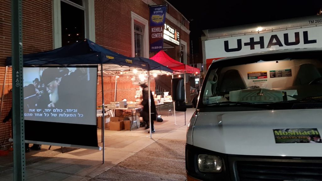 במקום הוקרנו מראות קודש מהרבי שליט"א מלך המשיח שגם כן משכו אליהם את האלפים.