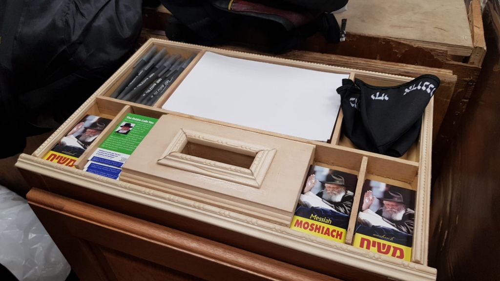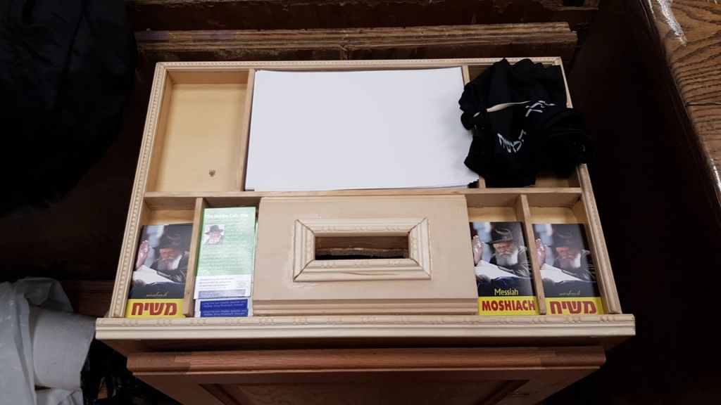 לאחר שלא היה כמעט חצי שנה הסטנד של בית חבד 770. הוא נבנה מחדש עי התמימים מ''מ אביעד ושלום זאב קרוגליאק בארון שעוצב מחדש לייעודו, כולל כלי כתיבה, דפים חלקים, כרטיסי משיח ועוד.