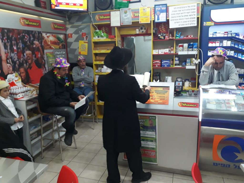 4 צוותות בליל פורים פעלו וקראו במגילה בכל הקיוסקים בעיר באירגון הרב מענדל עיזאגווי