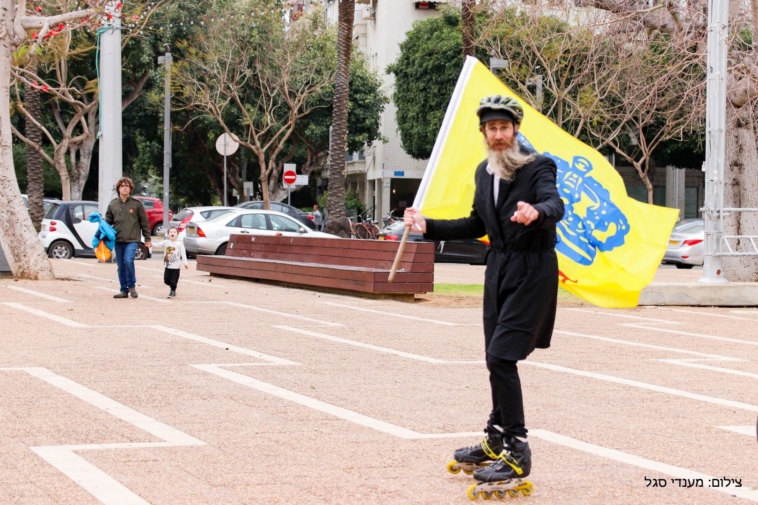 השיירה הססגונית יצאה מבני ברק ועברה במרכזי העיר תל אביב, כשהתמימים מצויידים בדגלי משיח, אפודים זוהרים וכובעים; במרכזים הגדולים בעיר עצרו התמימים למבצע תפילין, הסברת מהותו של יום ופרסום משיח.