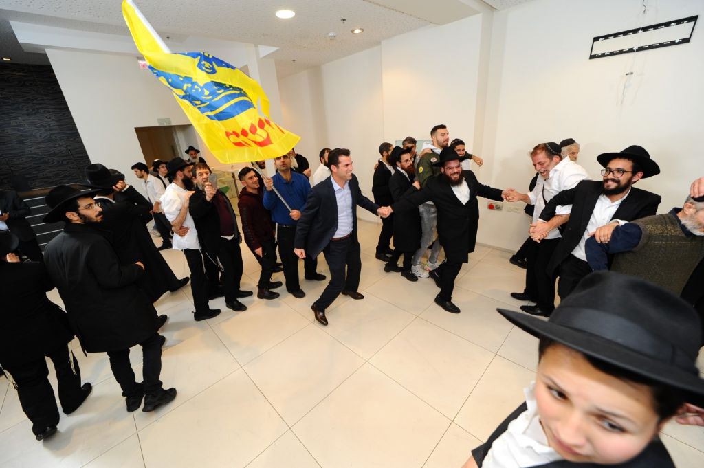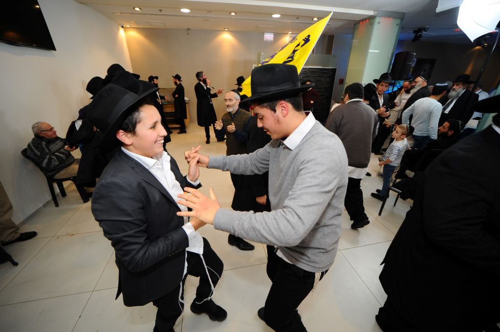 בין לבין פותח הקהל בניגוני התעוררות וריקודי שמחה בניצוחו של אומן הקלידים מענדל'ה מאזוז.