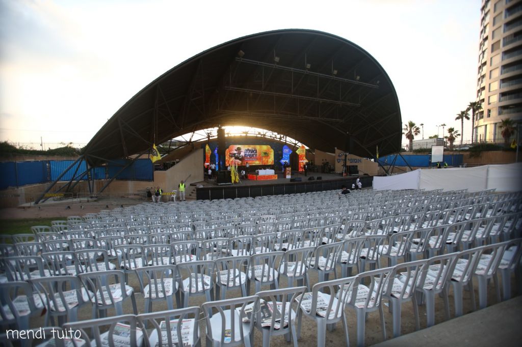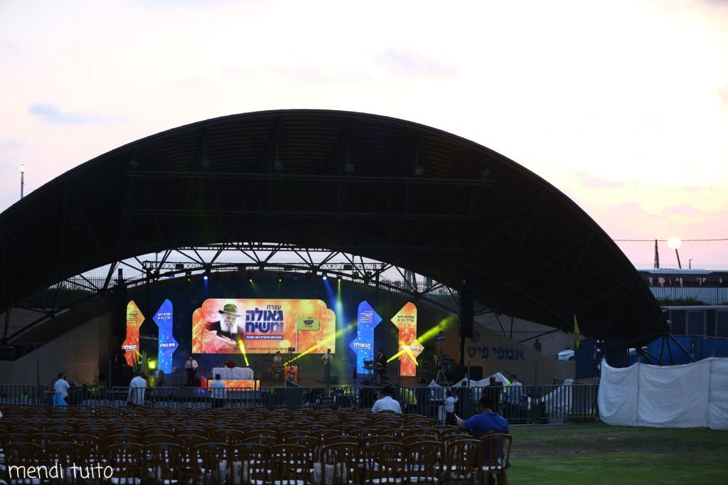 גלריה: ההכנות לעצרת גאולה ומשיח ג' תמוז באמפי בת ים.