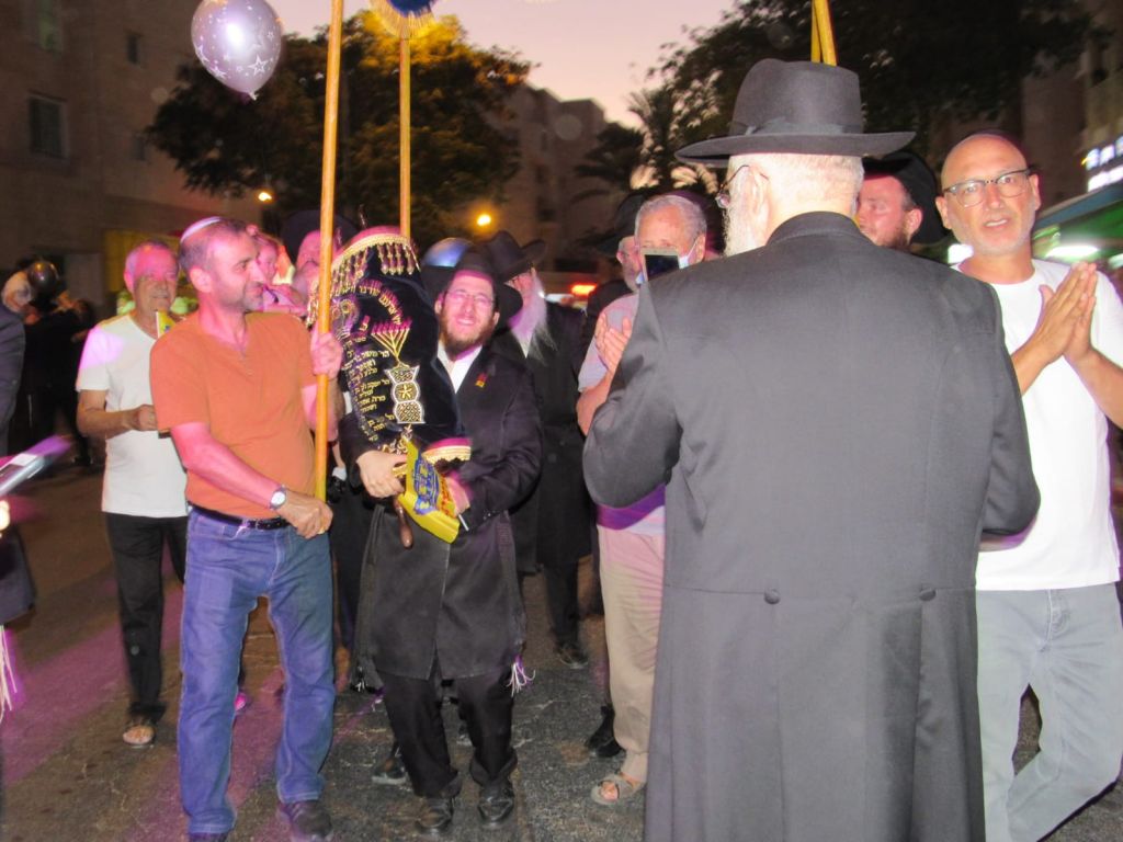 בתום סיום כתיבת האותיות יצאה תהלוכה בשמחה וריקודים, בהנחייתו הנפלאה של ר' אבי ועקנין, שסחפה אליה עוד עשרות יהודים שהצטרפו לשמוח בשמחת התורה.
