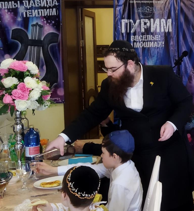 טרם החלה מסיבת הפורים המרכזית, המקדימים זכו לתת מחצית השקל לפני קריאת המגילה. נערך לימוד בחוברות מיוחדות בשפה הרוסית על היסטוריית החג.