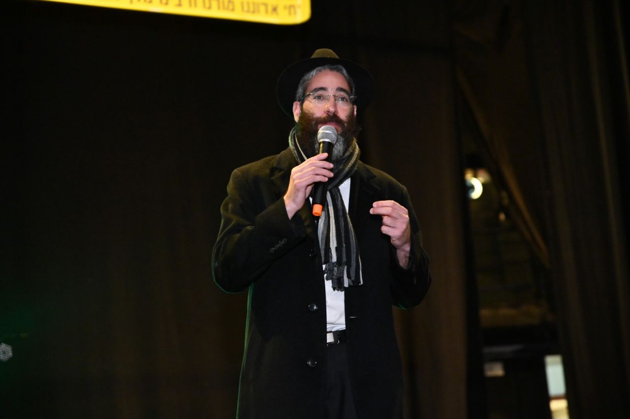 המנחה ר' אלעזר פרץ משלהב את הילדים, תוך שהוא מזמין את הרב יוסף יצחק טאוב – רב קהילת 'ממ"ש', לשאת דברים על מהות החג. ראש המועצה הדתית תרצה גרינפלד מברכת את קהל הילדים וההורים ומודה להקב"ה נרגשות על התפקיד החדש תוך שהיא מציינת שזהו האירוע הראשון בו היא משתתפת כראש המועצה הדתית והודתה רבות לפעילות 'מטה משיח' בעיר.