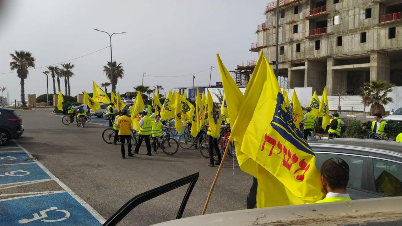 עשרות בחורים מישיבות חב"ד ברחבי הארץ, יצאו לפני שעה קלה בשיירת אופניים מרשימה לכיוון איצטדיון בלומפילד בתל אביב.