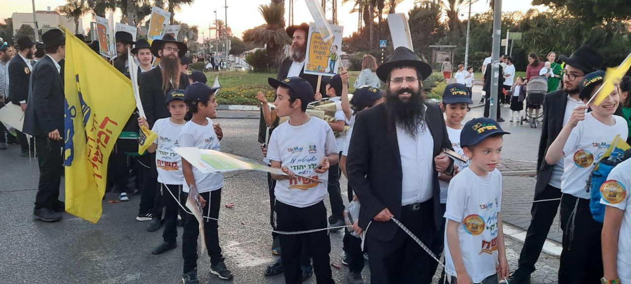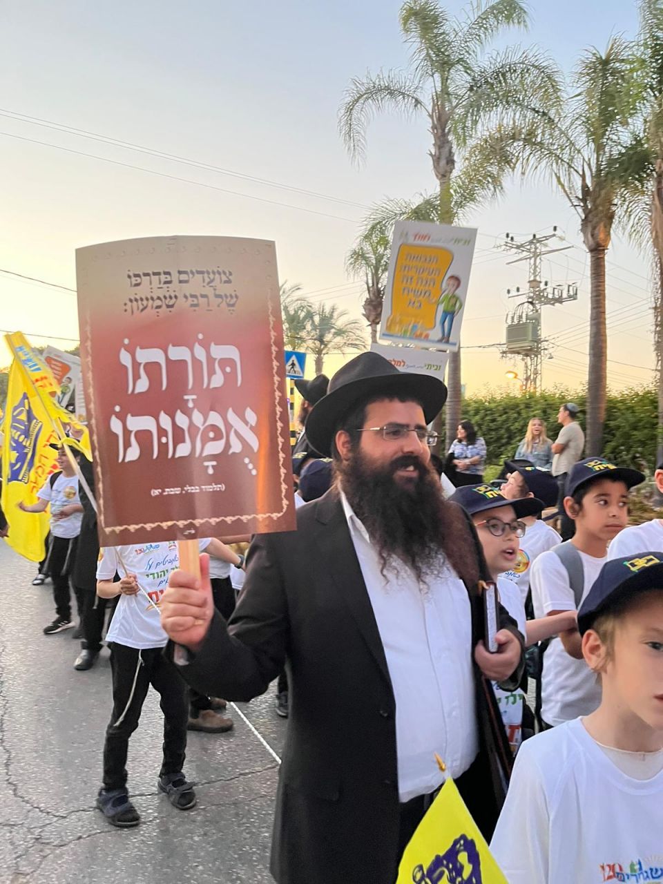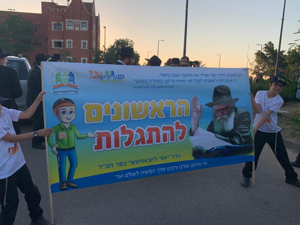 כלל התלמידים הוריהם צעדו בצורה מסודרת, כאשר הם מציגים את פרוייקט הענק שנערך בתלמוד תורה לרגל י"א ניסן: 120 אלף מתנות לרבי שליט"א מלך המשיח