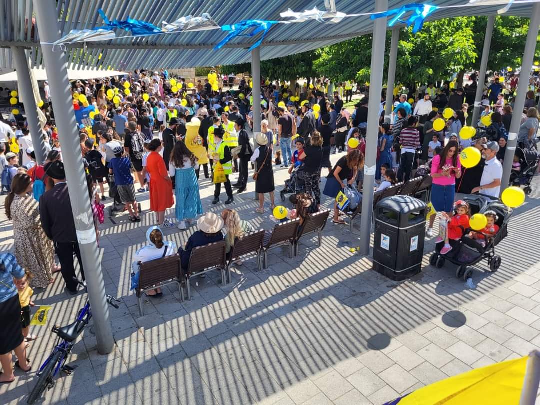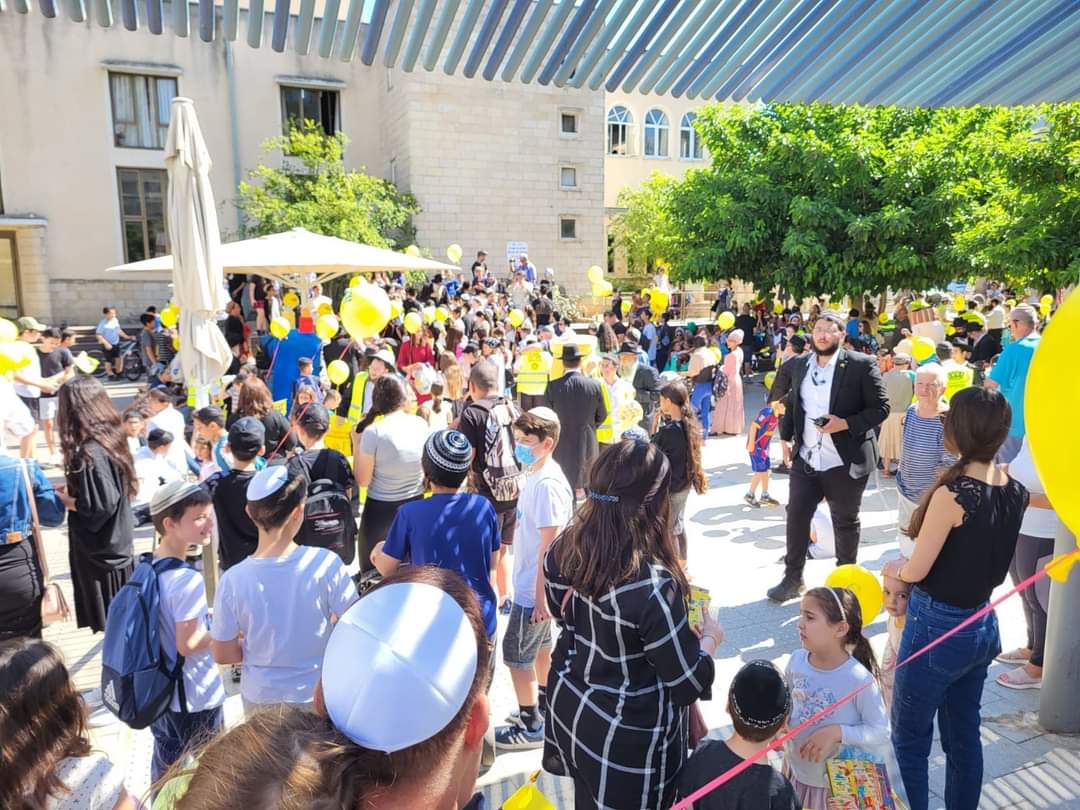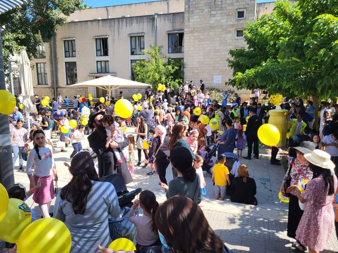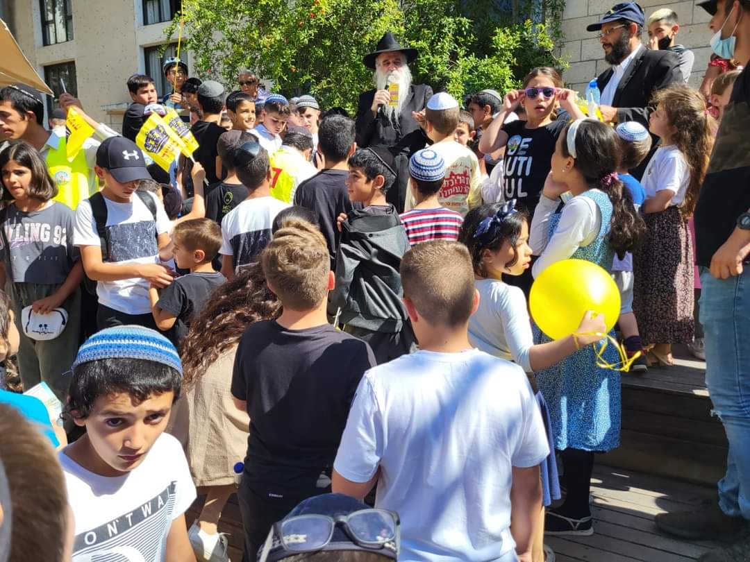 הילדים צעדו בתהלוכה גדולה עם בלוני ודגלוני משיח. ושלטים המבשרים על הגאולה האמיתית והשלמה.