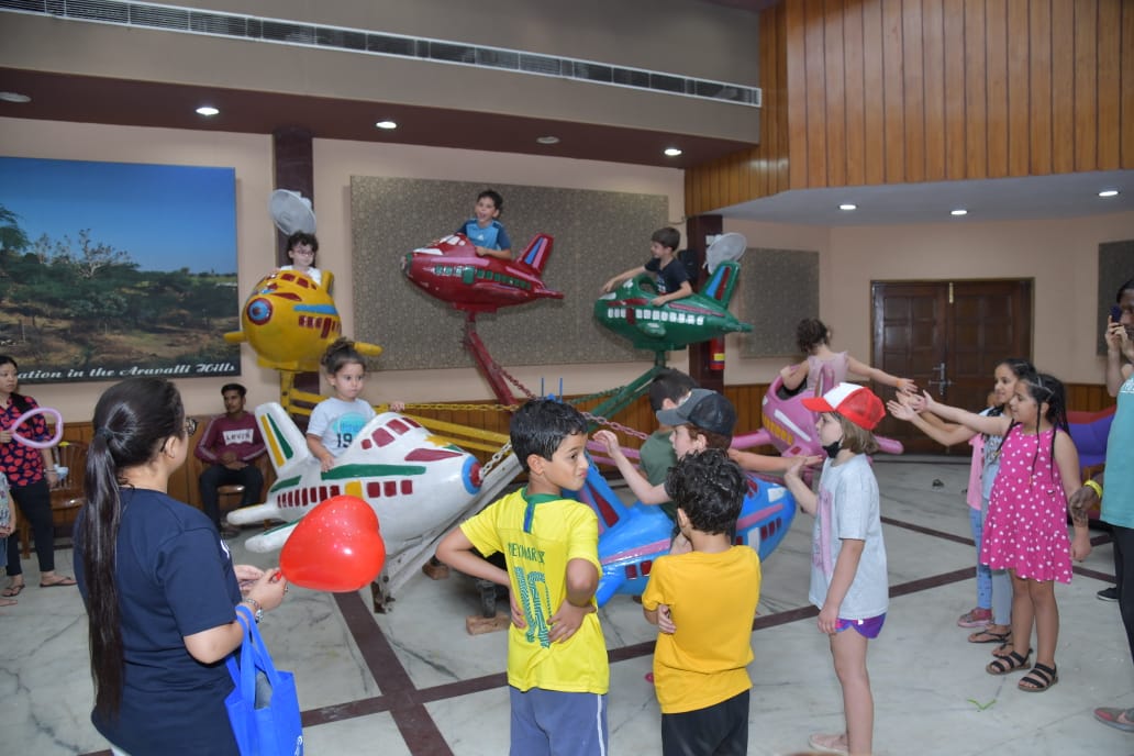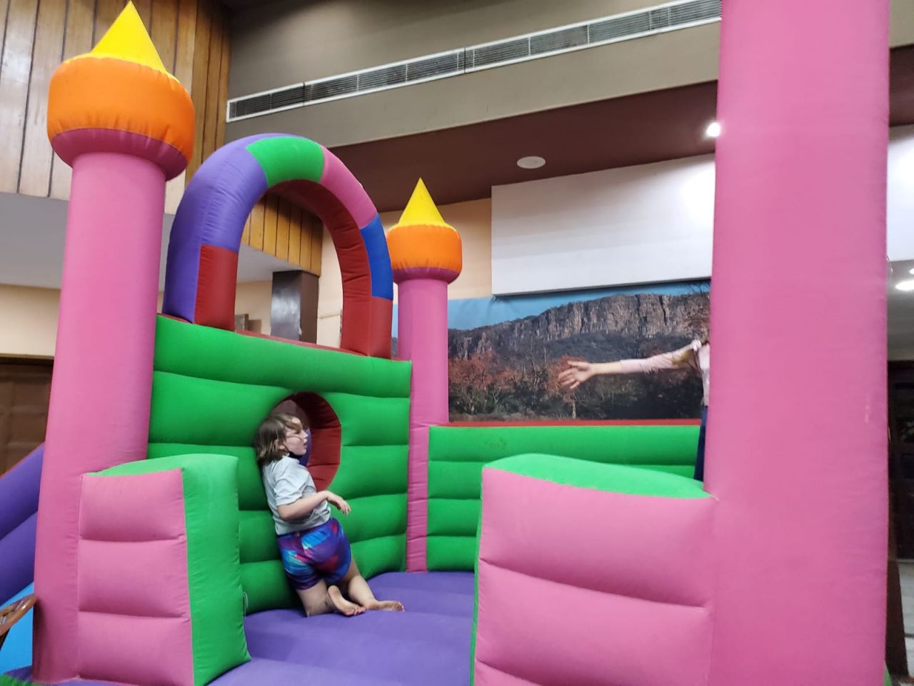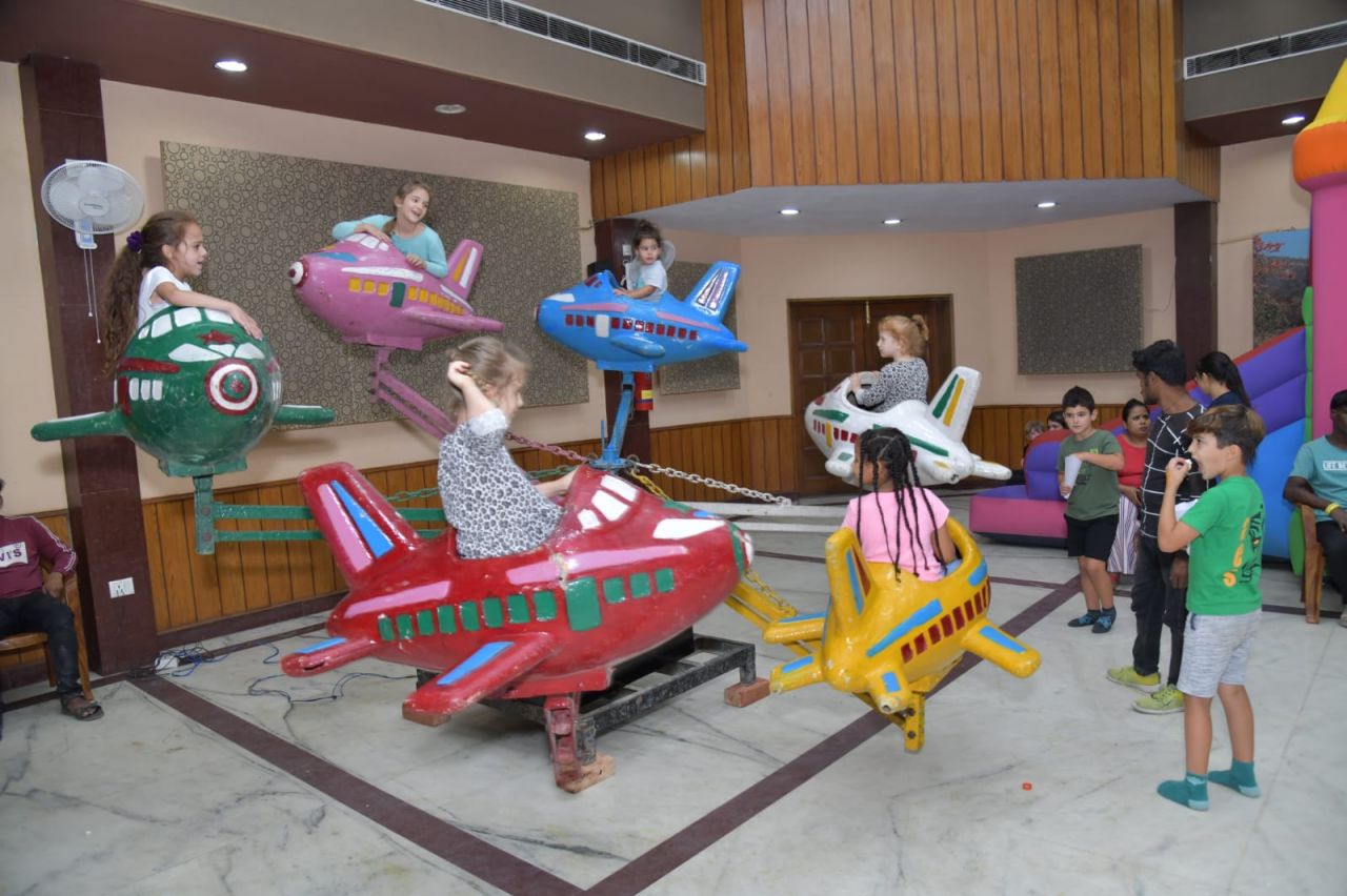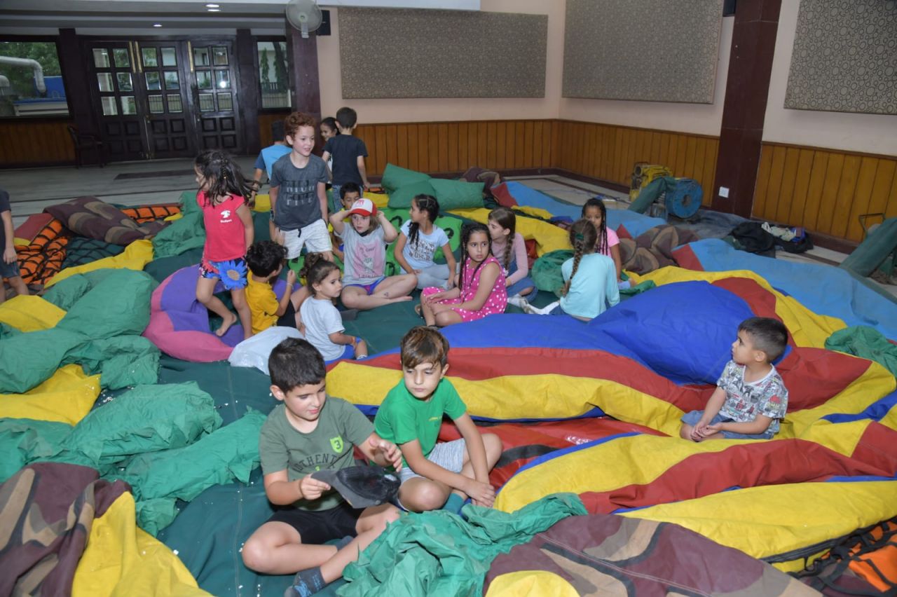 כשבחוץ מעל 45 מעלות חום, נשכר על ידי השליח הרב שניאור קופציק אולם ממוזג אליו הגיעו עשרות ילדים ונהנו ממתקנים.