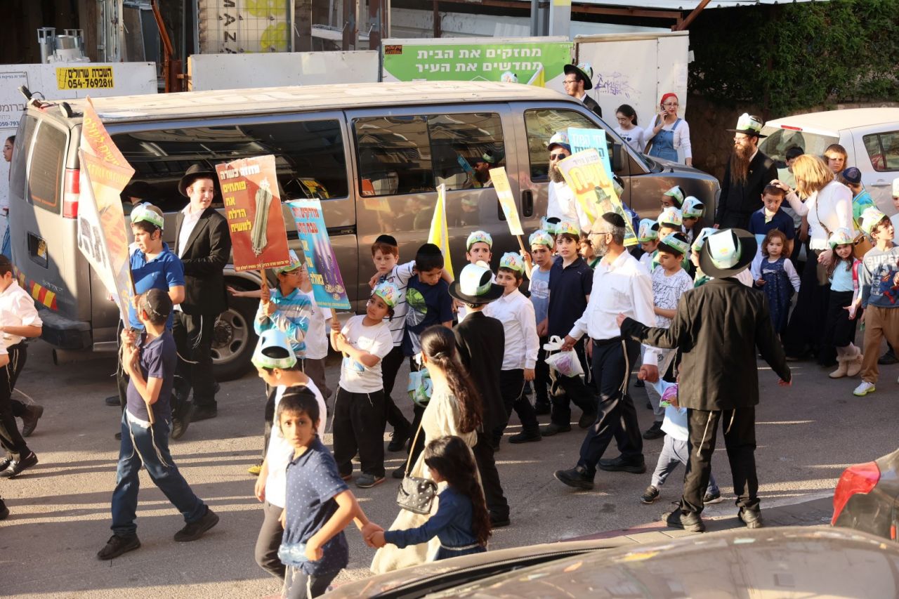 עם סיום נערכו הילדים לצעוד בתהלוכה המסורתית ברחבי העיר, כאשר שלטי המצוות בידיהם לצד דגלי משיח. בראש התהלוכה צעדו להקת מתופפים שהעירו את העיר בקדושה, ולאחריהם בסדר מופתי צעדו המאות הרבות כשאליהם מצטרפים כל העת עוד ועוד תושבים שנפעמו מהמראה.