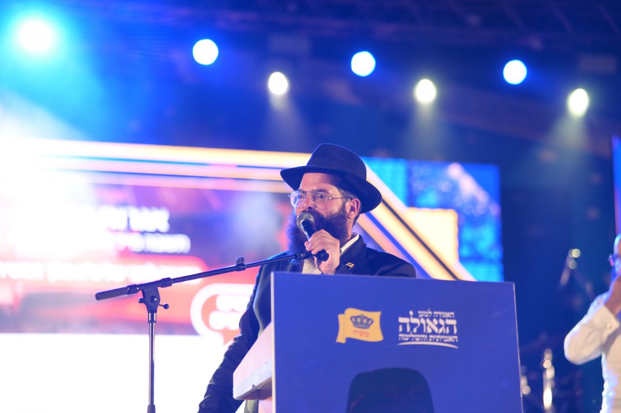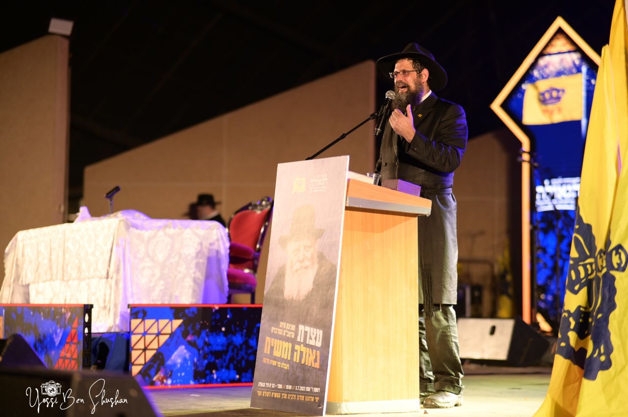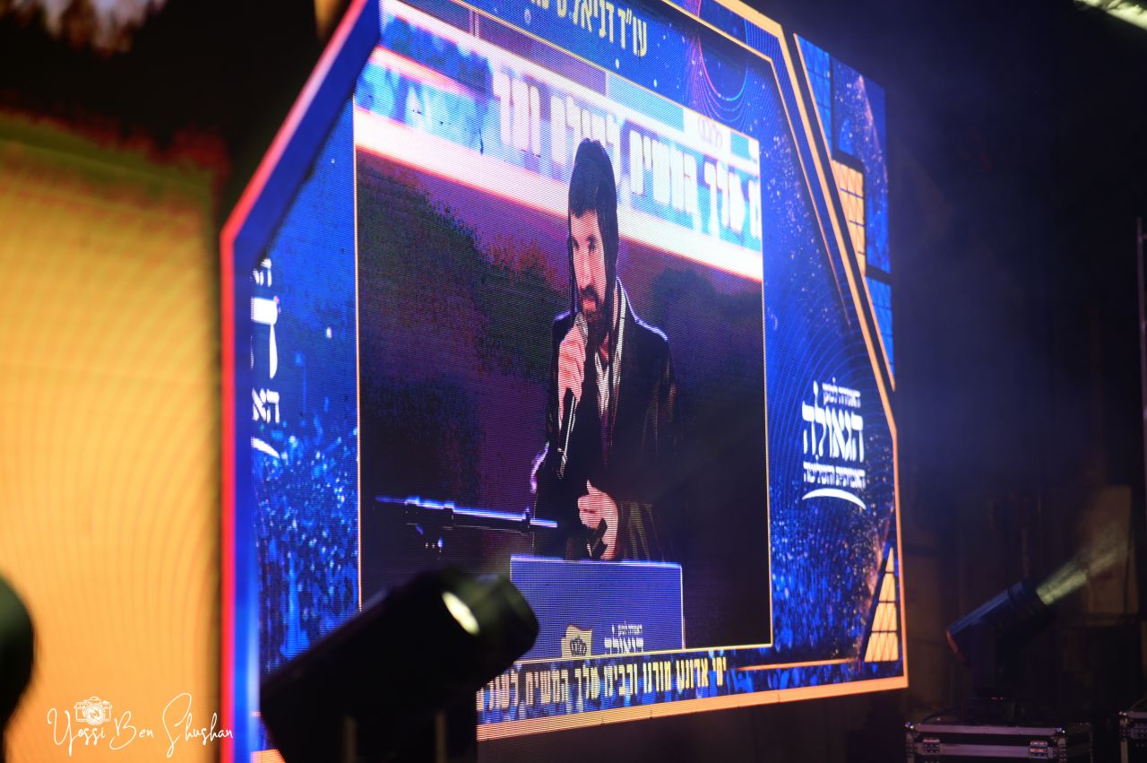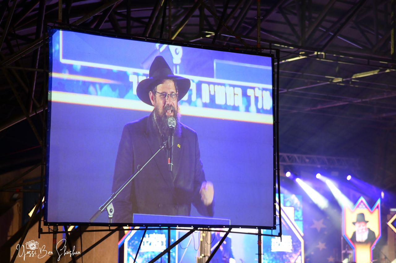 על המסכים מוקרן וידאו מיוחד מהרבי מלך המשיח שליט"א, ולאחריו עולה לדבר מר אורי בוסקילה, ממלא מקום ראש העיר בת ים. המוזיקה פורצת שוב, והקהל רוקד בעוז עם דגלי משיח והרבה שמחה.