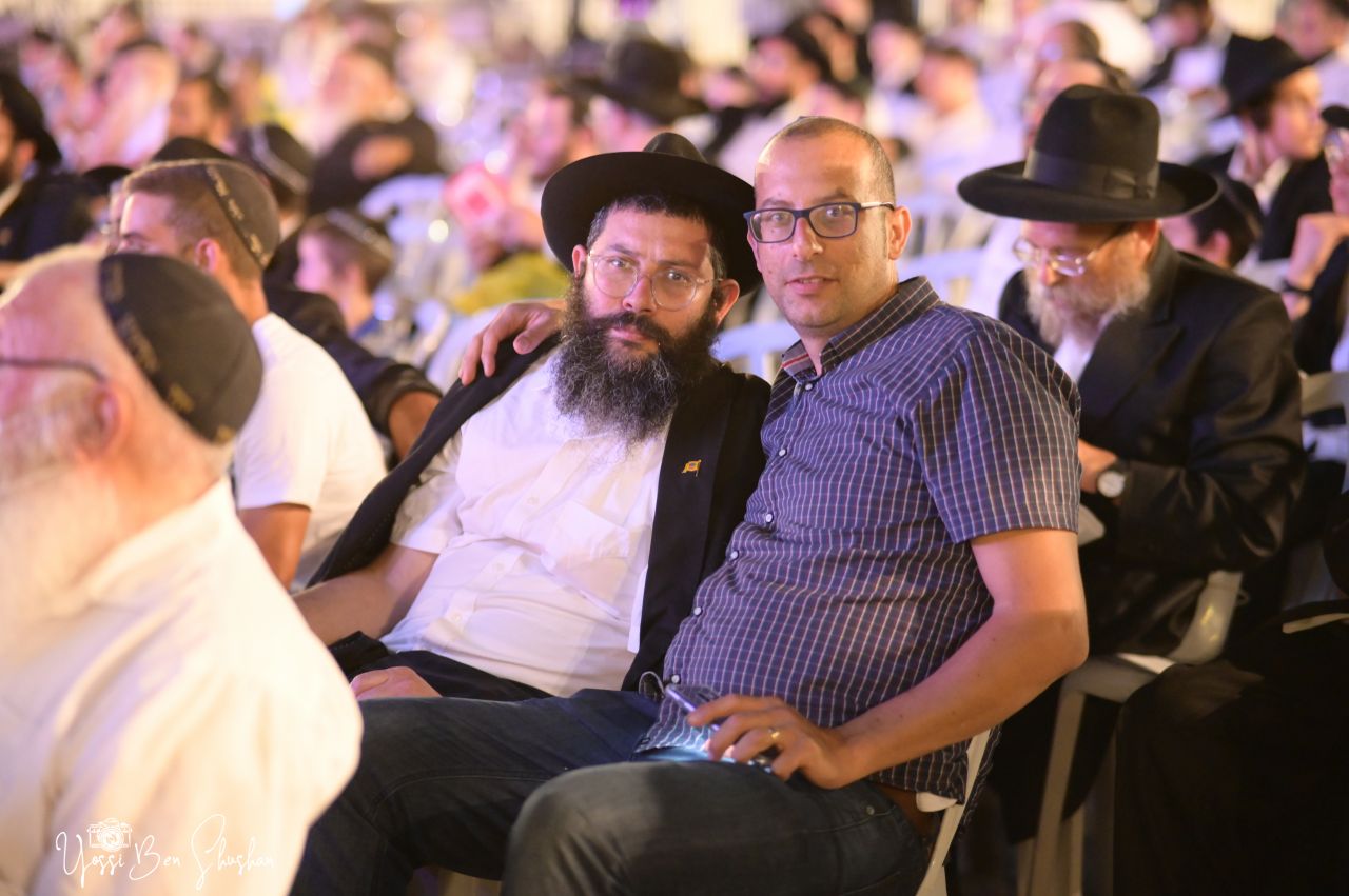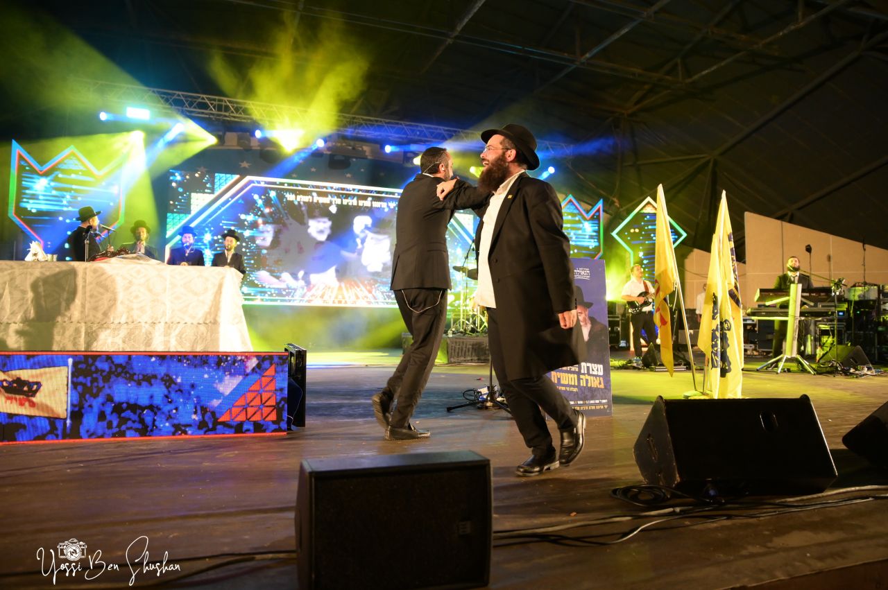 הרב אלעזר פרץ מודה לצוות ההפקה והרב יצחק רחימי, על הארגון המושקע, ומיד מזמין את הזמר איציק אשל למחרוזת שמחה ברוב שירה וזימרה.