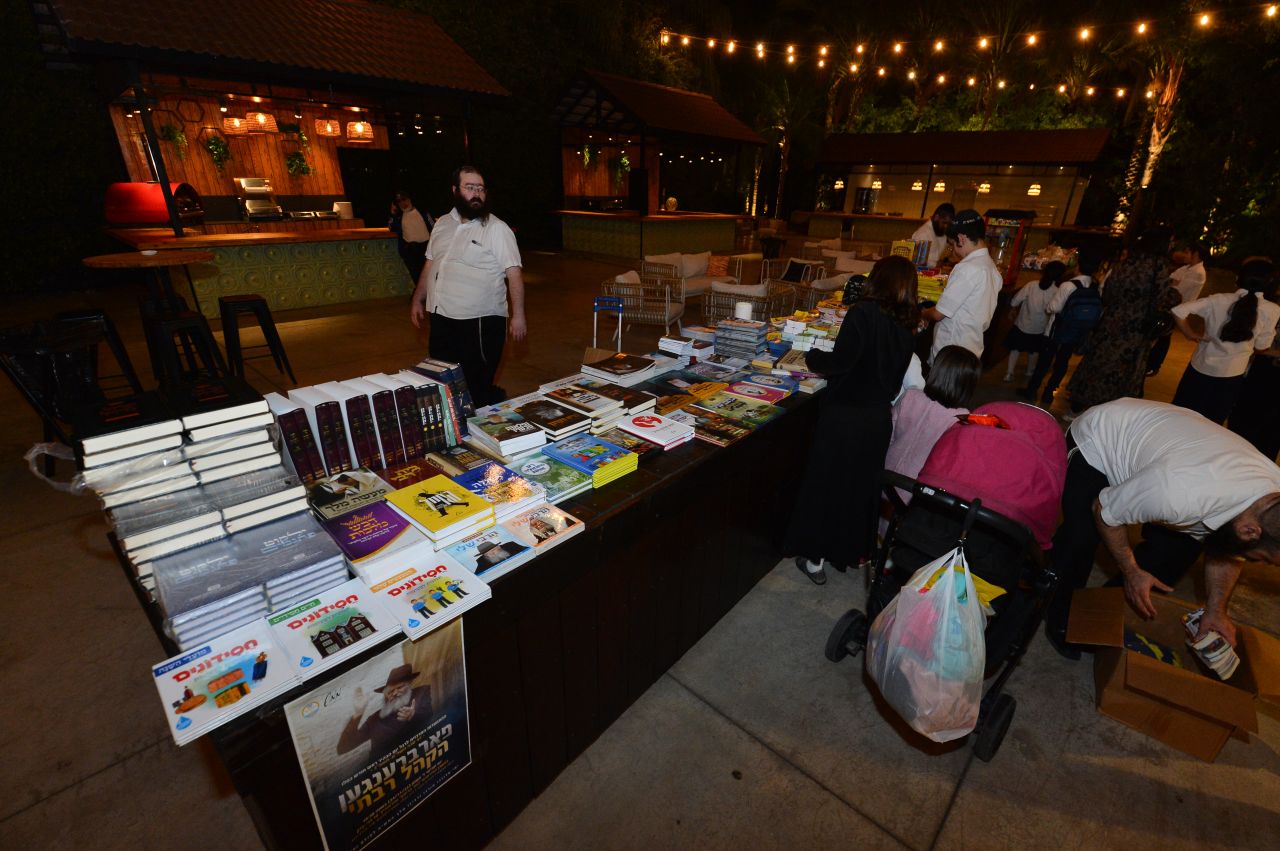 בצידי האולם הוצבו שולחנות עם שפע של שתייה ומאפים, ודוכני מכירות הציעו מגוון מוצרים להפצת משיח, כמו מדבקות, כרטיסי משיח, כיפות "יחי", ספרי קודש ועוד.