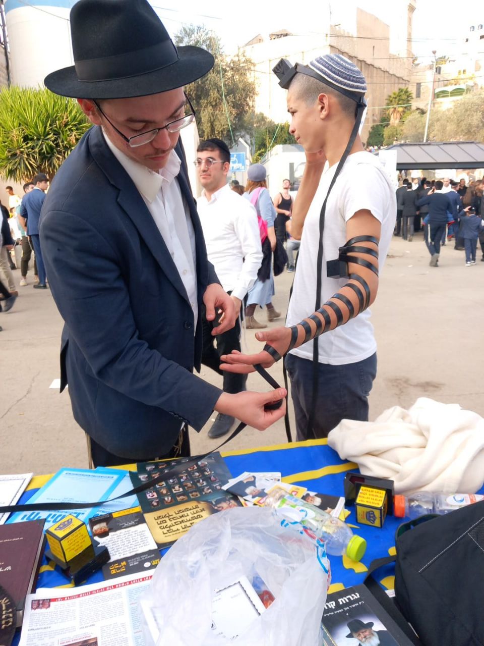 גם השנה הגיעו לחברון קבוצת בחורים מכמה ישיבות, ופתחו דוכן תפילין והפצת משיח סמוך לציון האבות הקדושים.