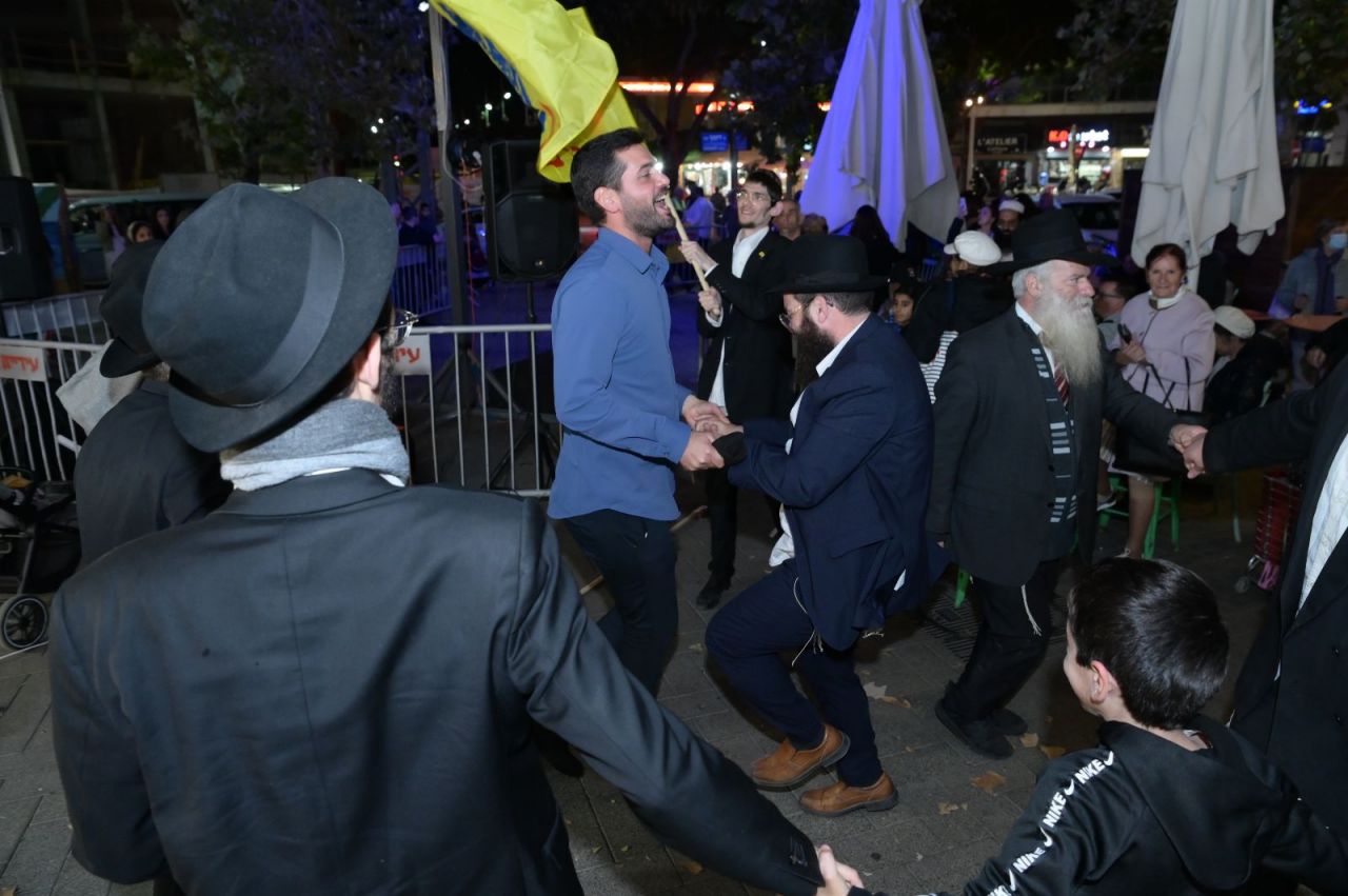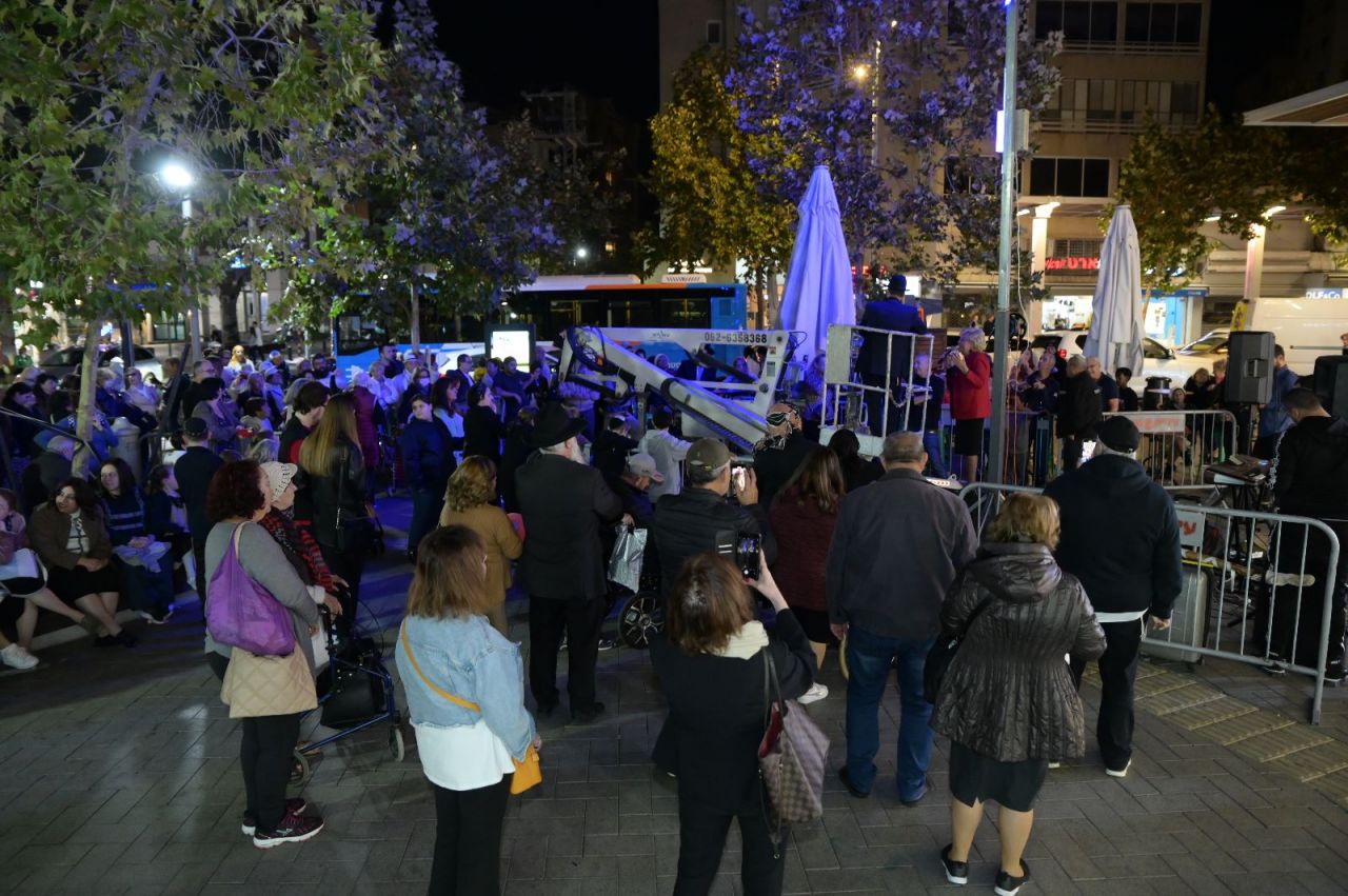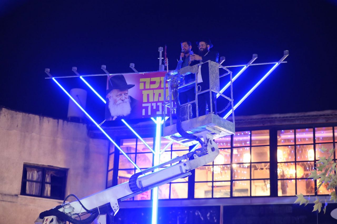ההדלקה נערכה על גבי מנוף שהרים חבר המועצה לגובה, יחד עם מנחה המעמד ר׳ אלעזר פרץ שהזכיר לנוכחים את משמעותה של שנת ״הקהל״.
