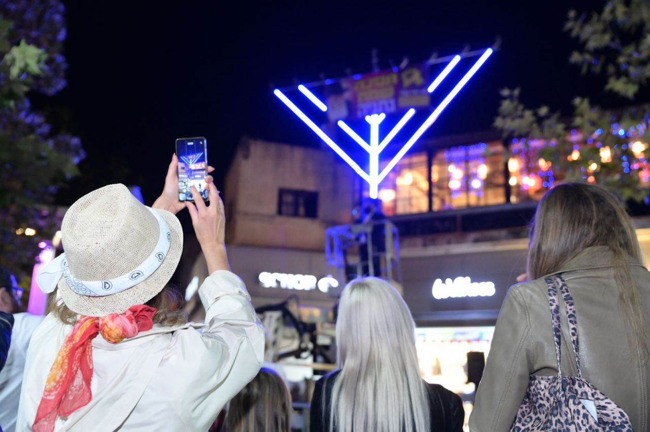 מאות משתתפים בהם אנשים, נשים וילדים השתתפו בהדלקת הנר הראשון של חנוכה, עם החנוכיה הגדולה באזור השרון (שמונה מטר).