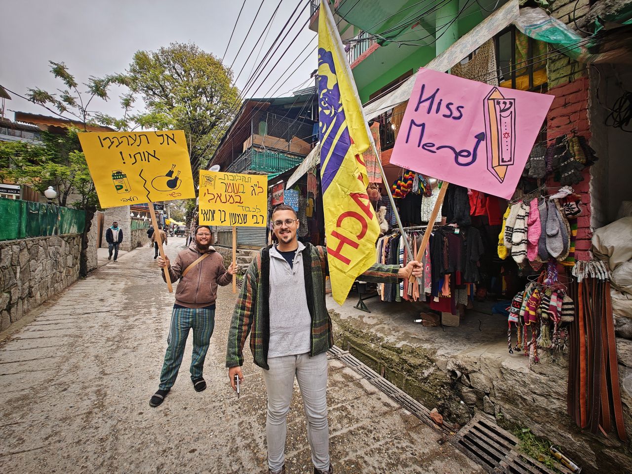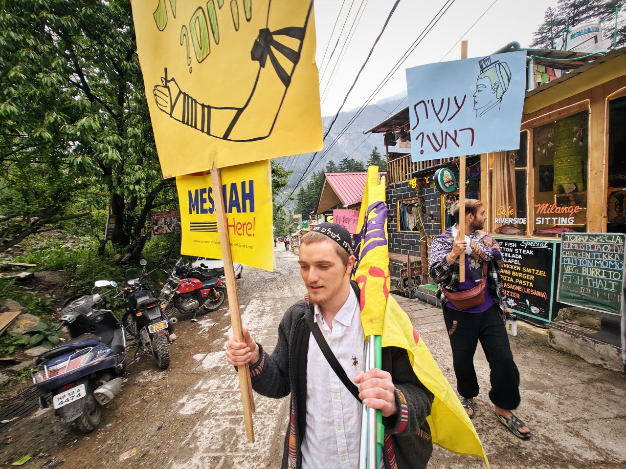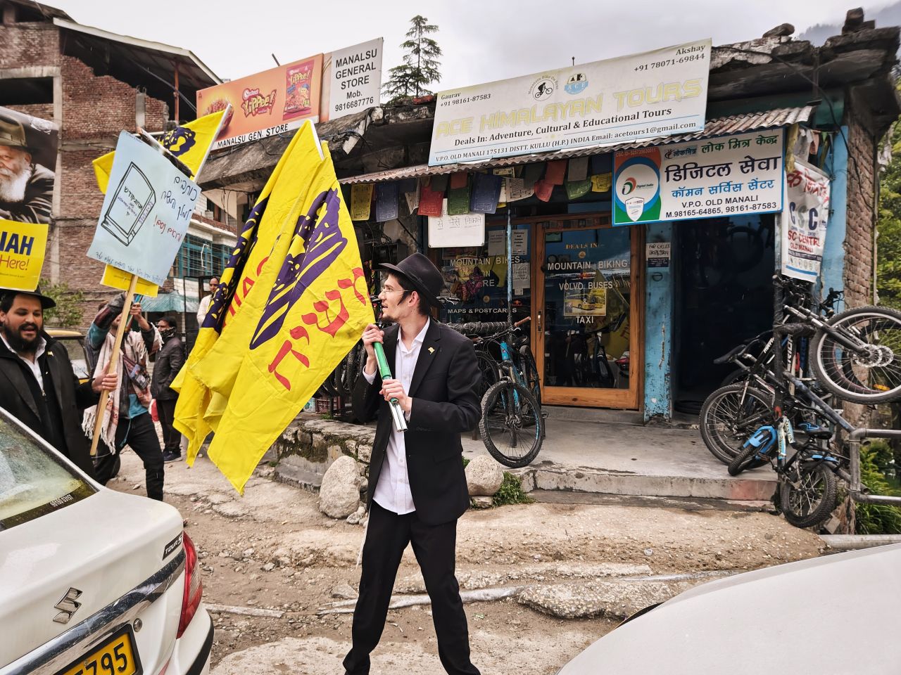 ההכנות לל"ג בעומר בעיירה מנאלי שבצפון הודו בניהולם של השלוחים חגי וגאולה מגן החלו כבר בשבוע שעבר. מטיילים שנכנסו לבית חב"ד סייעו בקישוט וציור השלטים לתהלוכה, והשלוחים עסקו בפרסום ברחבי העיירה על התהלוכה והדלקת המדורה.