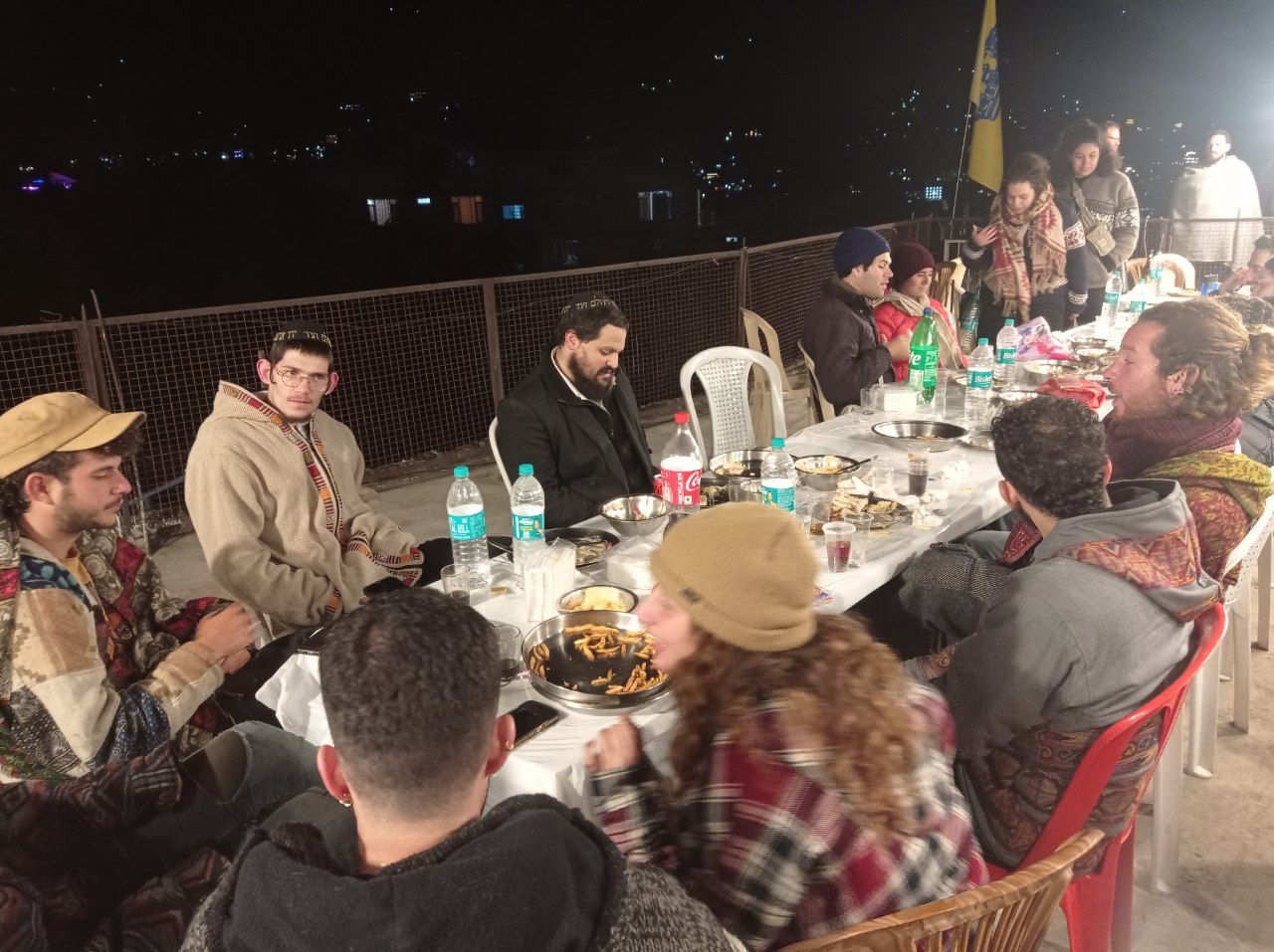 בערב, לאחר התהלוכה, התאספו המטיילים להדלקת המדורה לכבוד רבי שמעון בר יוחאי. לצד המדורה, שנערכה על גג בית חב"ד, התקיימה התוועדות עם לחיים ואוכל ישראלי בשפע, בהשתתפות כארבעים מטיילים ישראלים. ההתוועדות נמשכה אל תוך הלילה, כאשר התמימים השלוחים הוציאו מהיושבים החלטות טובות וקבעו איתם חברותות בלימוד חסידות לימים הקרובים.