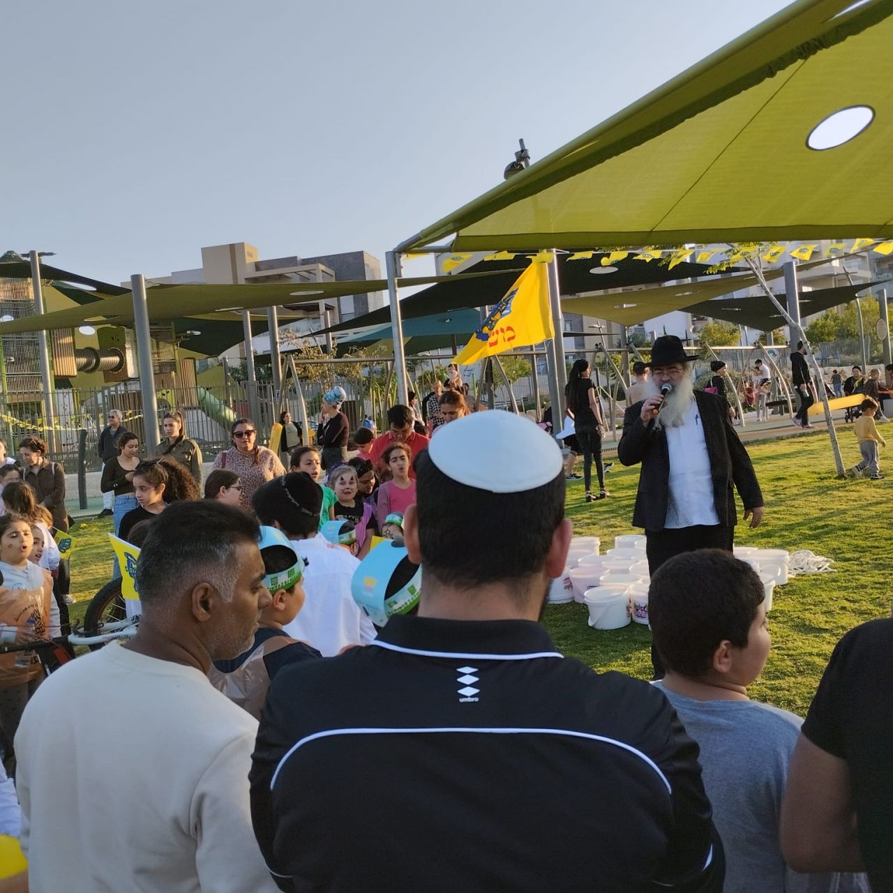 הרב מנחם כהן, רבה של קהילת חב"ד בבאר שבע, דיבר עם הילדים אודות מצוות הקהל והגאולה האמיתית והשלימה ובירך את הילדים בברכת כהנים.