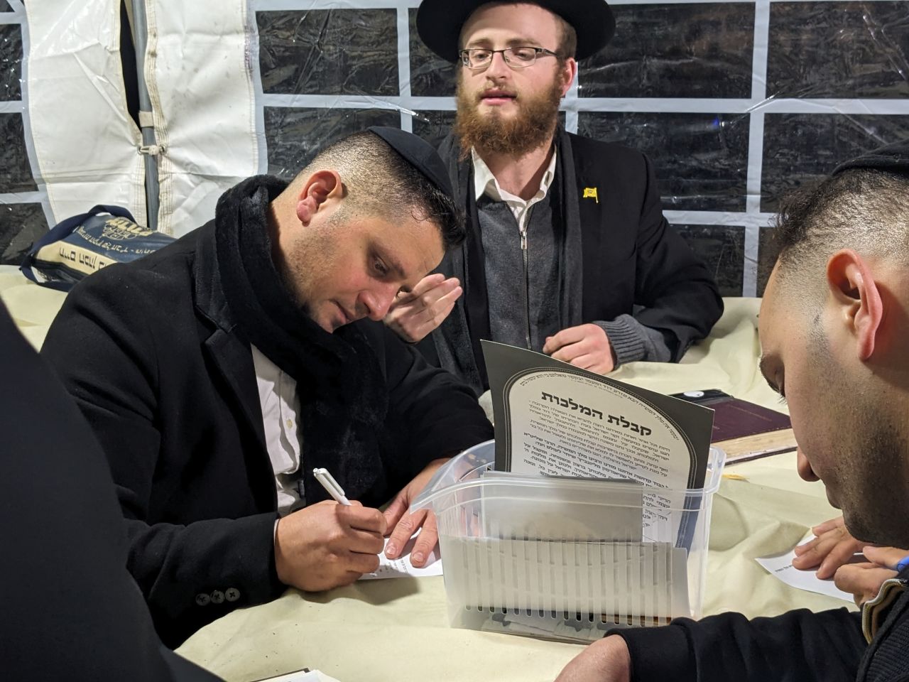 אלפי יהודים נכנסו אמש (מוצאי שבת) לדוכן הכתיבה לרבי מלך המשיח שליט"א במתחם הילולת הבבא סאלי בנתיבות. לצד האוהל שהוקצה לכתיבה עבור הגברים, הוקם בסמוך אוהל נוסף עבור הנשים.