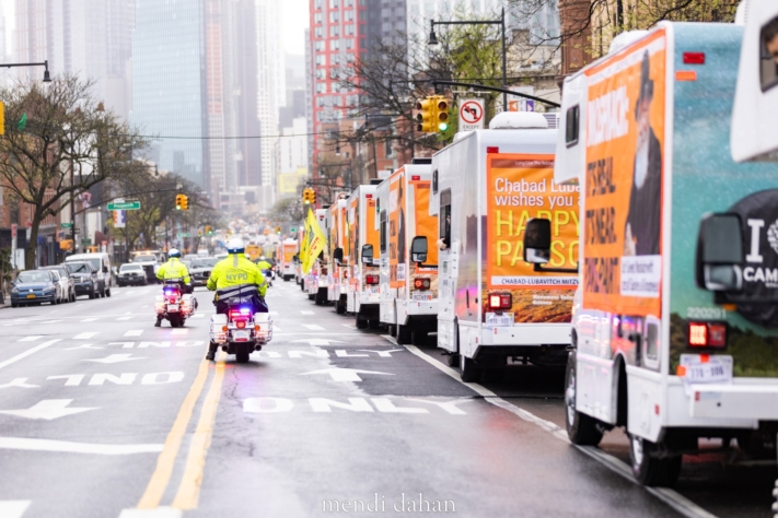 השיירה עברה ברחובות המרכזיים של ניו יורק, וכך הביאה את המסר של החג ושל הגאולה לעשרות אלפים. עם סיום השיירה, התפזרו הטנקים לפעילות עם יהודים בכל רחבי העיר שבו הונחו עשרות הנחות תפילין, חומר על י"א ניסן, נש"ק, ומצות שמורות לפסח.