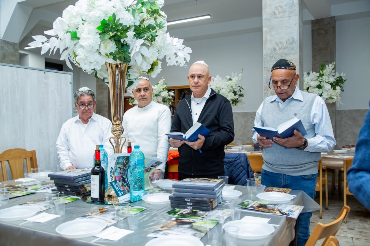 ההתכנסות החלה בתפילת מנחה, וחלק מהאורחים הניחו תפילין.