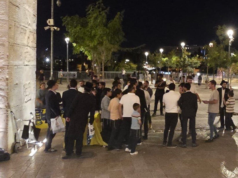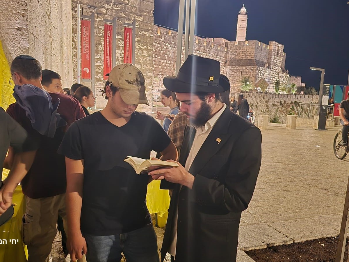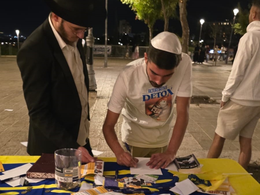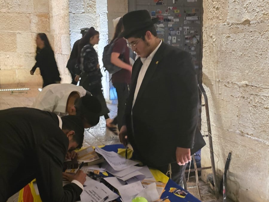 המון העם שעלה היום לירושלים, הביא את תלמידי ישיבת "המלך המשיח" בעיר להקים דוכן לכתיבה לרבי שליט"א מלך המשיח באגרות קודש.