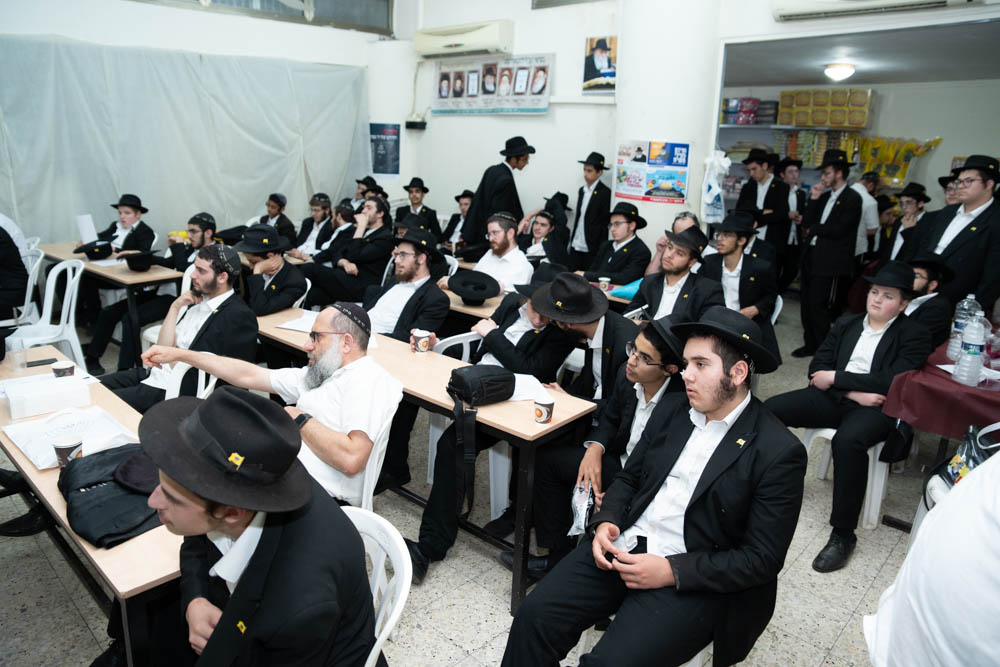 לאחר תפילת מנחה ברוב עם, עולה הת' לוי גבריאל לעשות סיום מסכת כפי הוראתו של כ"ק אדמו"ר מלך המשיח שליט"א. לאחריו ניגש אל המיקרופון הדובר הראשון הרה"ג הרב יעקב יוסף שליח ורב בית הכנסת "תהילת ה'" בכפר יונה. הרב יוסף נושא דברים חוצבי להבות אודות עניינו של תמים שזהו לימוד התורה, דבר שהוא קריטי ומשפיע רבות על הפצת המעיינות של כל אחד ובפרט בעמדנו בשנת היובל למבצע תורה.