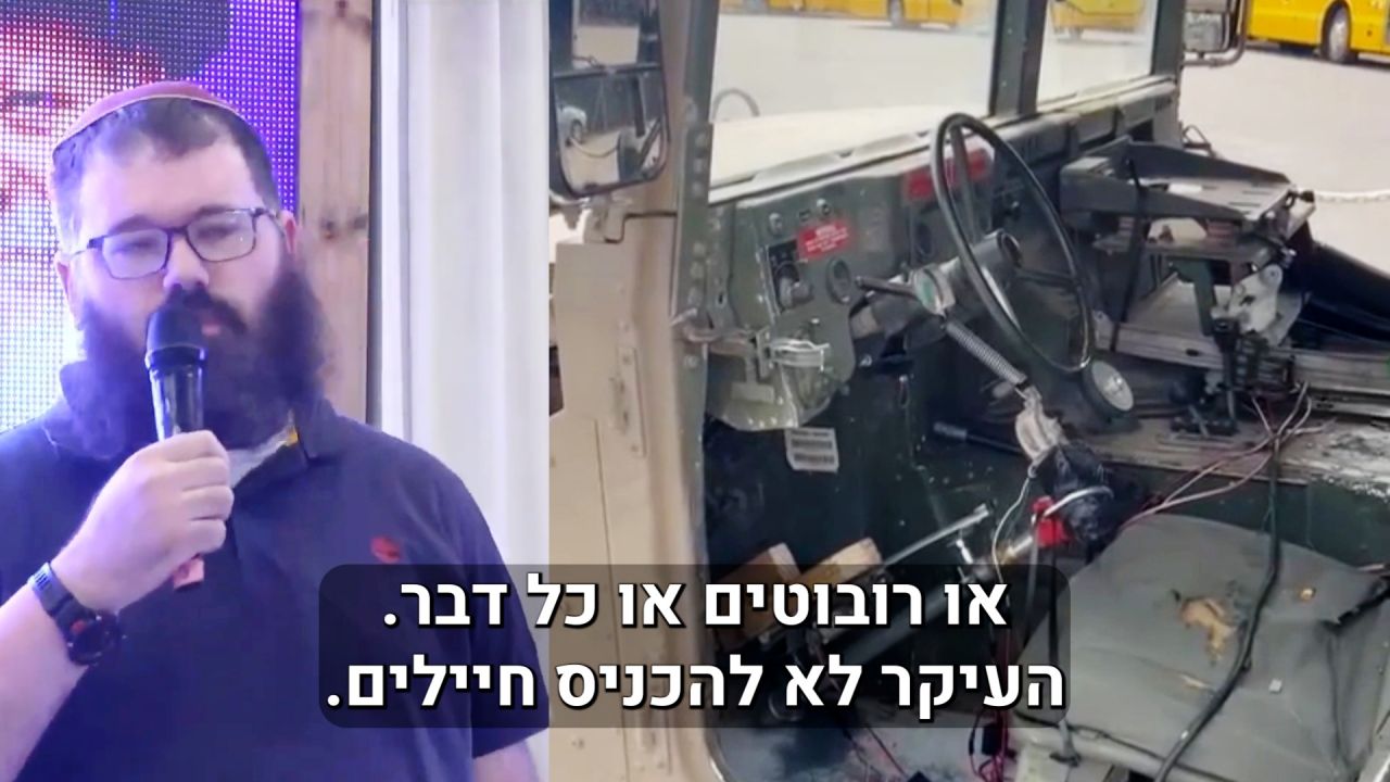 תוך כדי הלחימה היה לי שאלה בראש. הרבי תמיד אומר לא להכניס חיילים. להשתמש בטכנולוגיה. של רכבים ממונעים או רובוטים או כל דבר. העיקר לא להכניס חיילים. והייתי משתף כל פעם את הלוחמים שמסביבי. אם יש למישהו רעיון איך אפשר לחסוך הכנסה של חיילים. פגשתי פעם אחת איזה לוחם מיחידה מיוחדת, ואמרתי לו תקשיב הרבי מלובאוויץ' מבקש לא להכניס חיילים, ואני כל הזמן מנסה למצוא פתרון. הוא אומר לי תשמע התפרצת לדלת פתוחה. אני ביחידה מיוחדת בצבא, שמפתחת קיט שיכול לקחת כל רכב, ולהפוך אותו לרכב אוטונומי על שלט. אם אנחנו עכשיו נמצאים בעזה או בלבנון, במקום לשלוח רכב עכשיו שחוטף אר.פי.גי’ אני יכול לחבר משהו לרכב, ל האמר - לדוגמה, ולהפוך אותו לקיט ממונע.