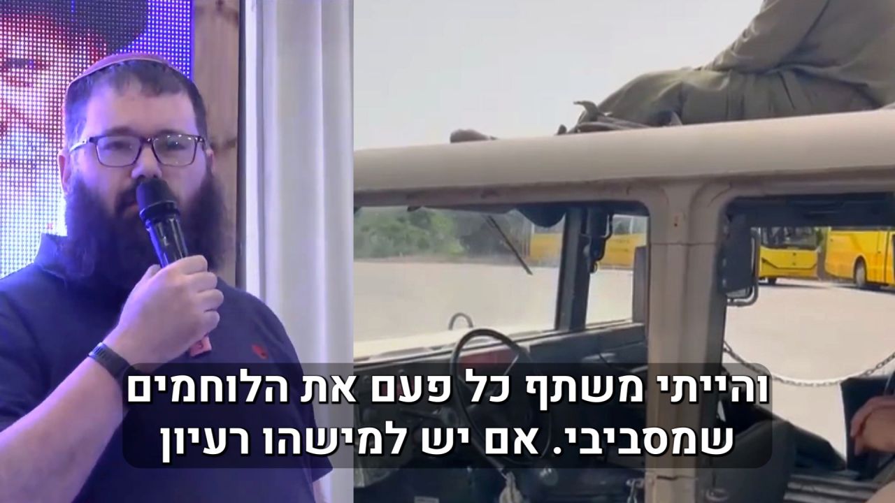 ואני עכשיו יוכיח לכם את זה בעזרת השם על ידי הסיפור שאני אספר. הקדוש ברוך הוא זיכה אותי להיות רס"ר של יחס"ם גבעתי. במהלך המלחמה אם ראיתם את רפיח, את כל הסרטונים, איך הבתים שם נופלים, זה היה על ידי חומרי נפץ שאנחנו הכנסנו לתוך עזה, מי שזוכר היה התלבטות המון זמן, האם להיכנס לרפיח.
