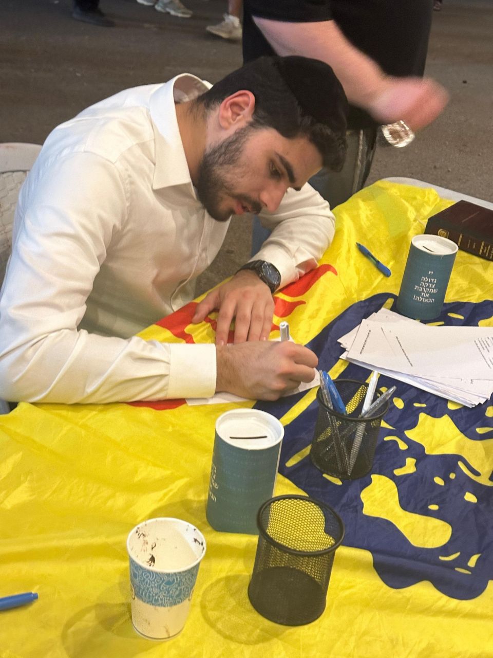 בשיא ההכנות לפעילות הגדולה במירון בעוד 4 ימים, הגיעו כמידי שנה צוות 'בית חב"ד הילולות' מישיבה גדולה חח"ל צפת ופתחו במקום דוכן לכתיבה לרבי שליט"א מלך המשיח באמצעות ה'אגרות קודש', מאות אנשים זכו לקבל את ברכתו של הרבי שליט"א מלך המשיח, לצד חלוקת חומרי הסברה על בשורת הגאולה וזהות הגואל.