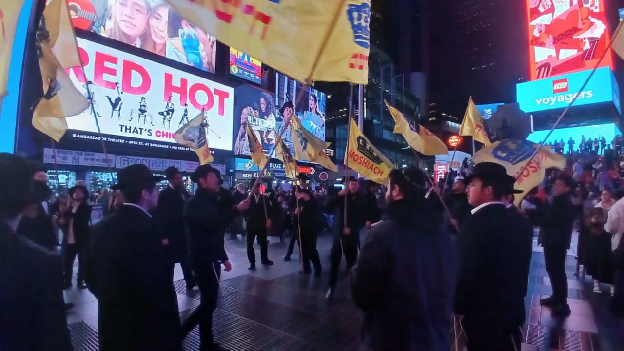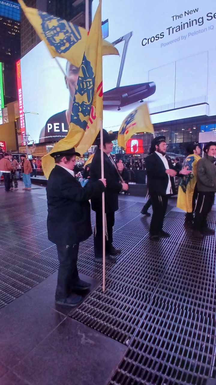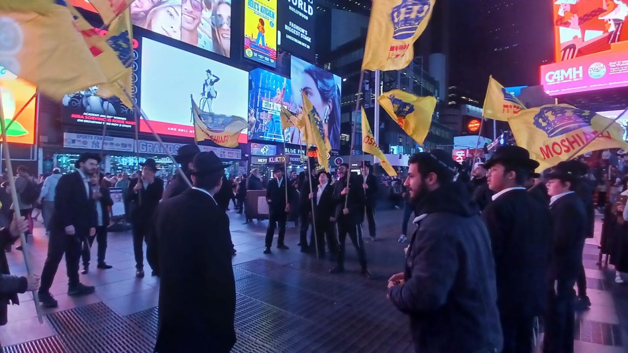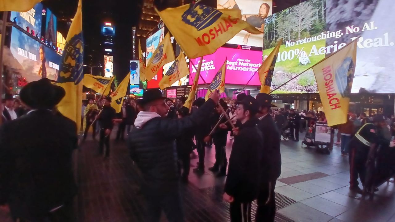 כיכר טיימס סקוויר, הינה אחד המקומות ההורים בעולם כולו. אלפי תיירים גודשים את המקום המואר כשהם מתעדים ומצטלמים למזכרת. כפי שנהוג בשנים האחרונות, יצאו מידי לילה תמימים מ-770 לעריכת שמחת בית השואבה במקום.