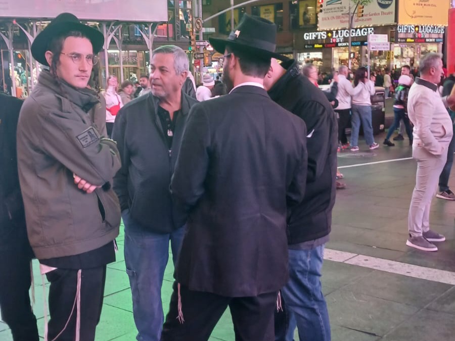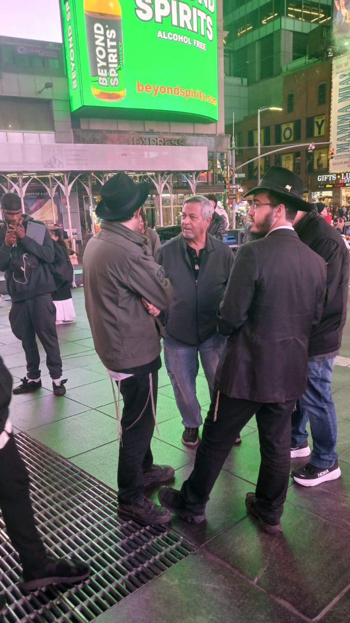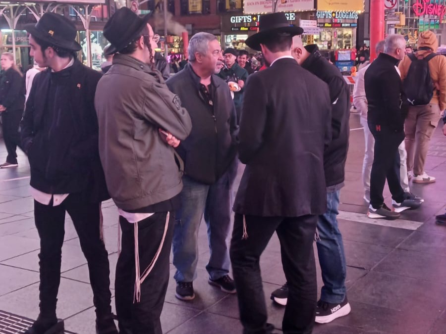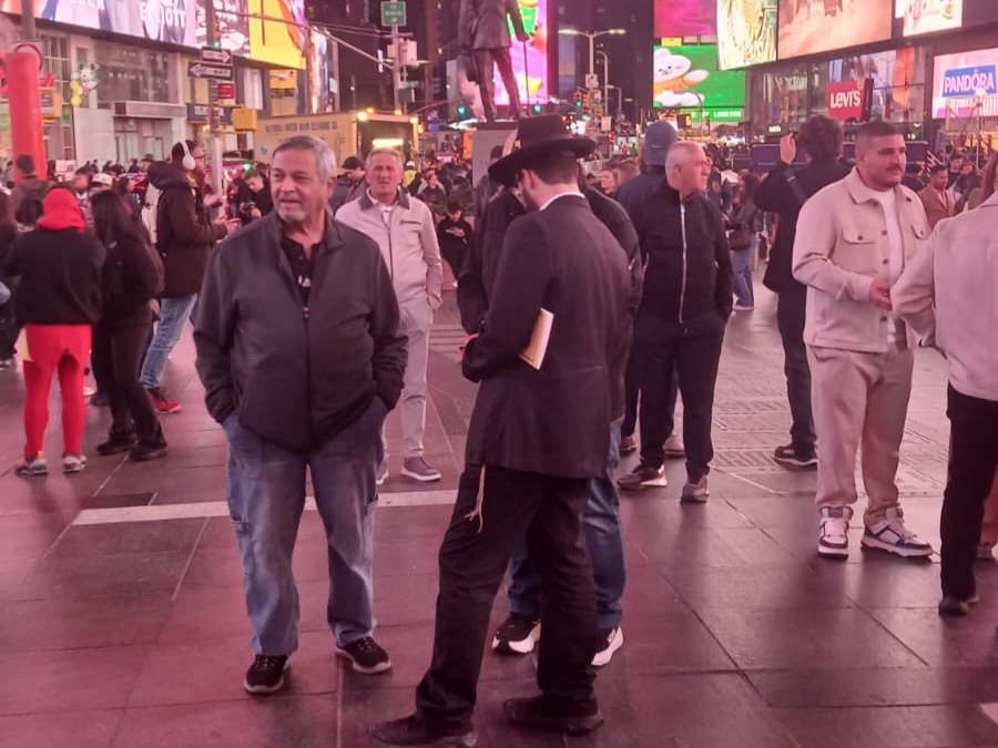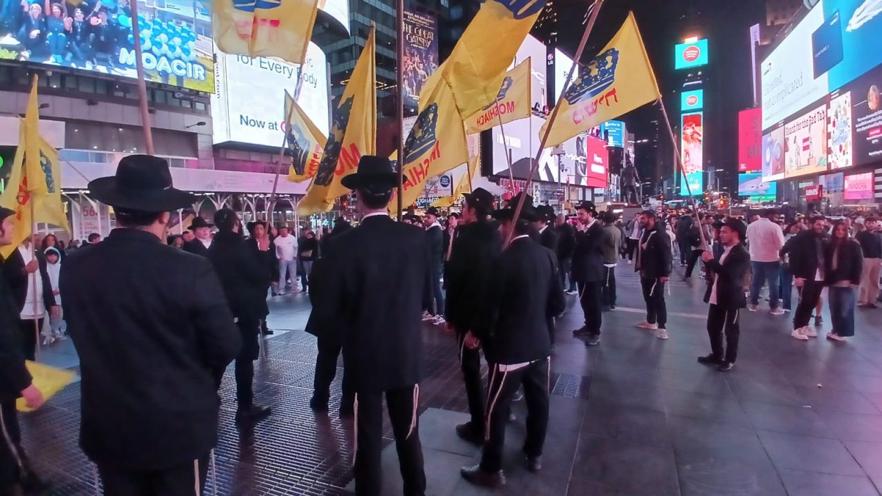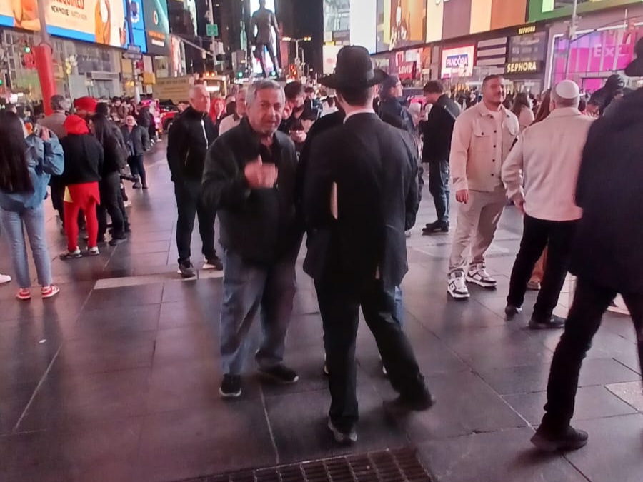כיכר טיימס סקוויר, הינה אחד המקומות ההורים בעולם כולו. אלפי תיירים גודשים את המקום המואר כשהם מתעדים ומצטלמים למזכרת. כפי שנהוג בשנים האחרונות, יצאו מידי לילה תמימים מ-770 לעריכת שמחת בית השואבה במקום.