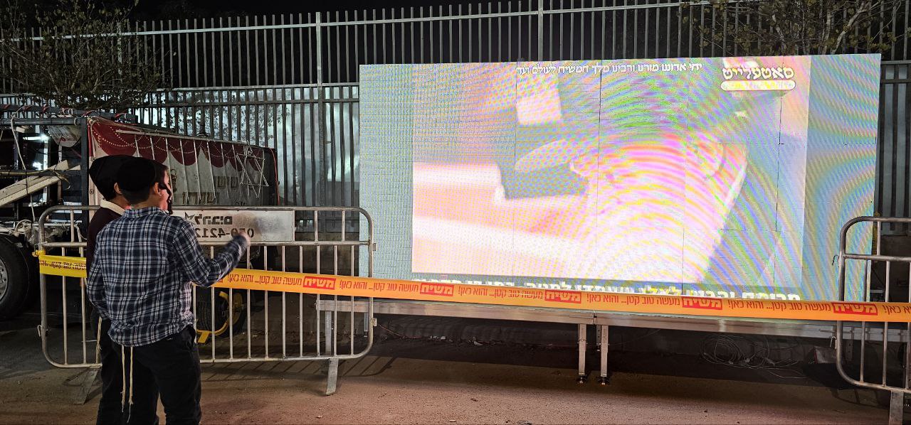 כמו כן, היה מסך ענק עם וידאו של הרבי שליט"א מלך המשיח שפעל ללא הפסקה, כשעשרות יהודים צופים בו, וגם עזרו לעשרות יהודים להניח תפילין ולבקש ולדרוש את הגאולה האמיתית והשלימה עכשיו בהכרזת הקודש: