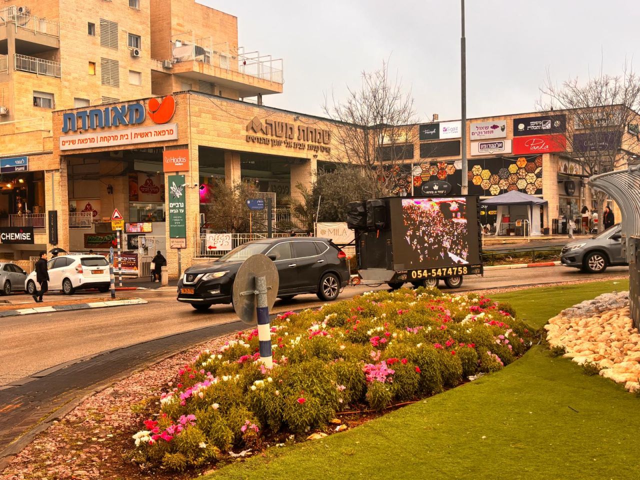 במהלך היום כולו הסתובב רכב גדול ומפואר עם מסכי ענק, שם הוקרנו קטעי וידאו מראות קודש מהרבי שליט"א מלך המשיח, כשבמערכת הכריזה מוזמנים אלפי תושבי העיר לגשת לדוכני ההתקשרות ולכתוב לרבי שליט"א מלך המשיח.