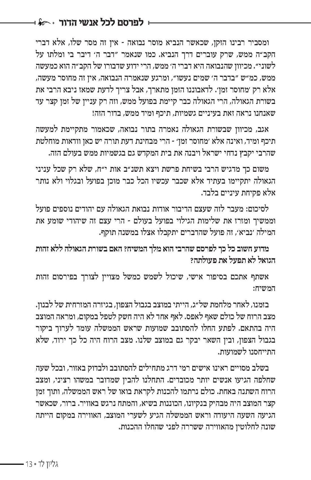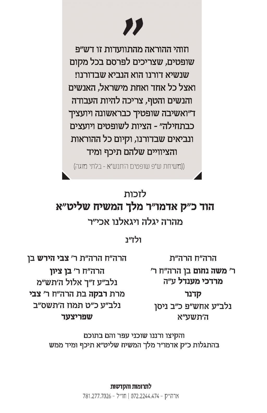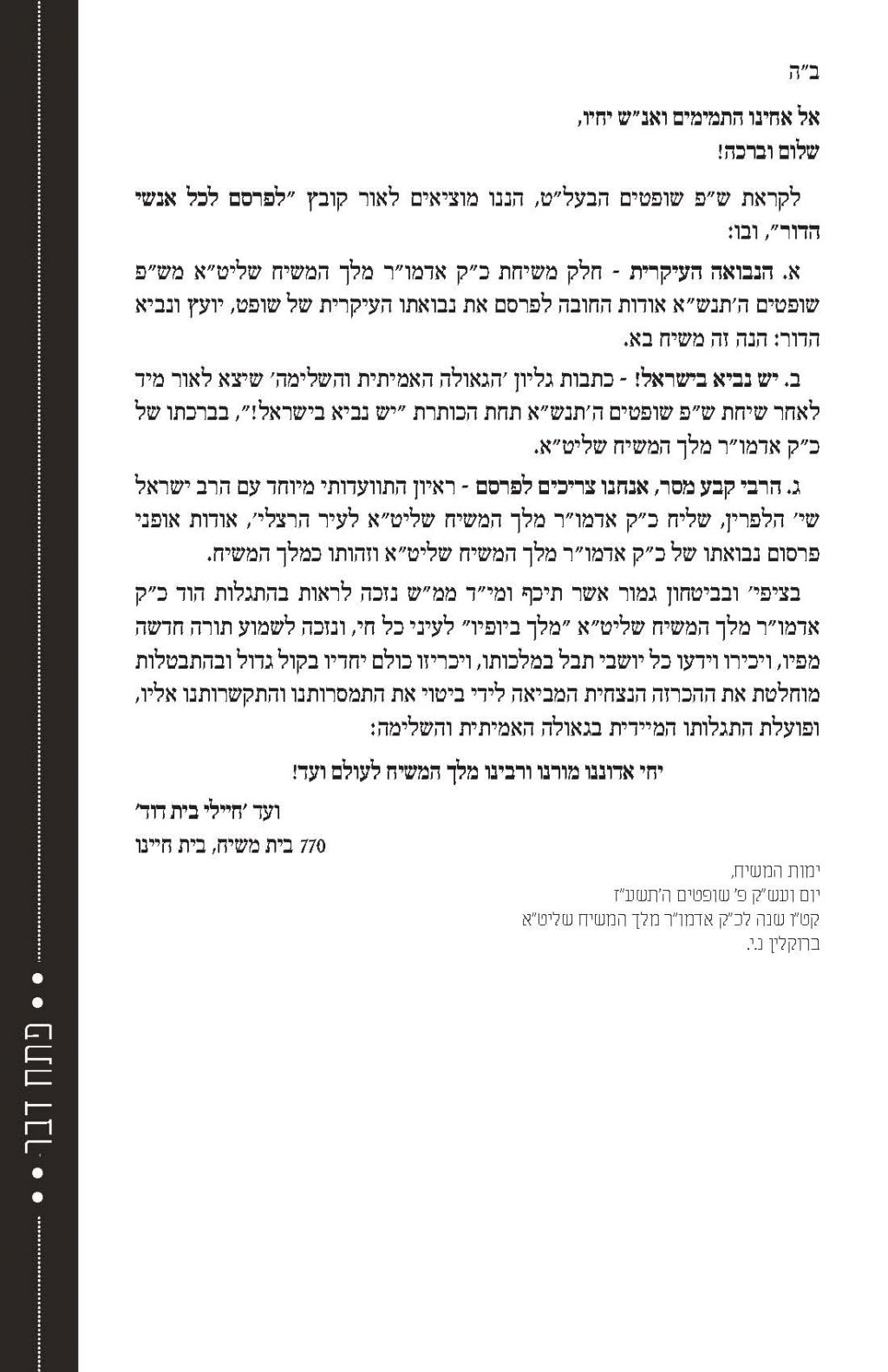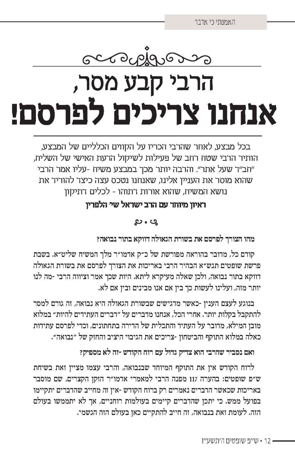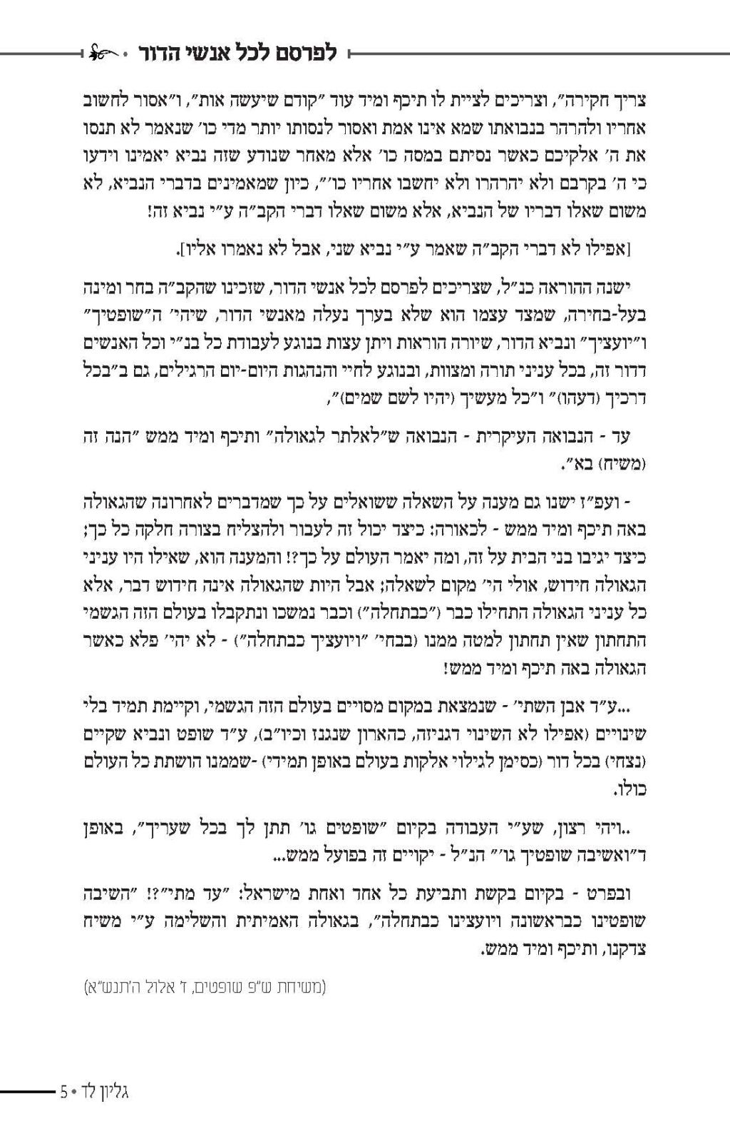 מערכת חיילי בית דוד הפיקה לקראת פ' שופטים קובץ המתאר את מה שהתחולל אחרי ההכרזה שחזרה הנבואה לישראל, פ' שופטים תנש"א