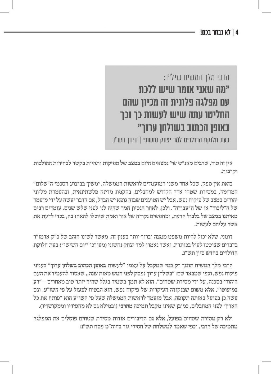לקראת מועד הבחירות, נשלחה אלינו חוברת של הרב וולפא "דרך אמונה בחרתי" משנת תשמ"ט, בנוגע לאיסור השתתפות בבחירות (תשמ"ט) היות שאין למי להצביע, שרלוונטית גם היום.
