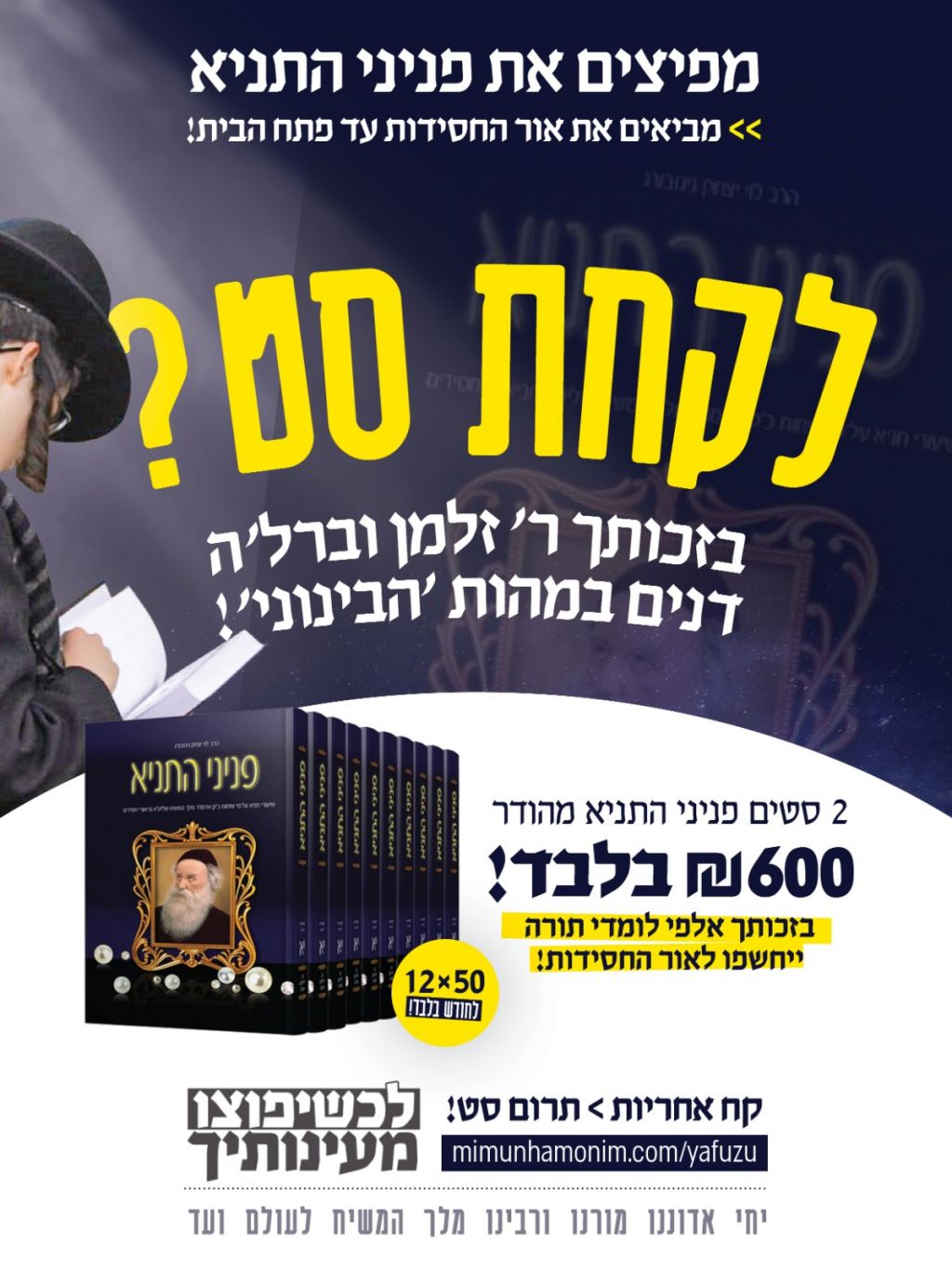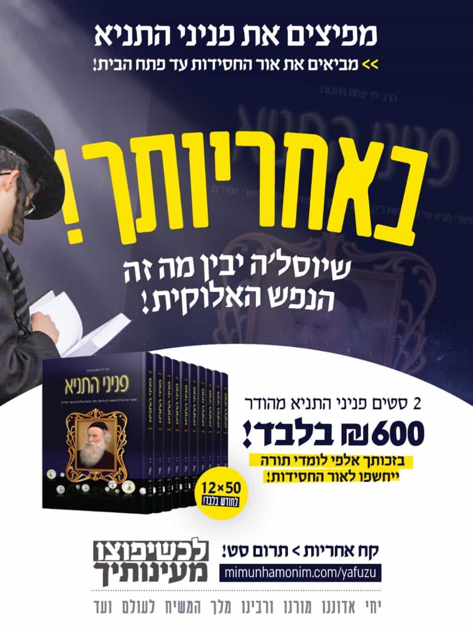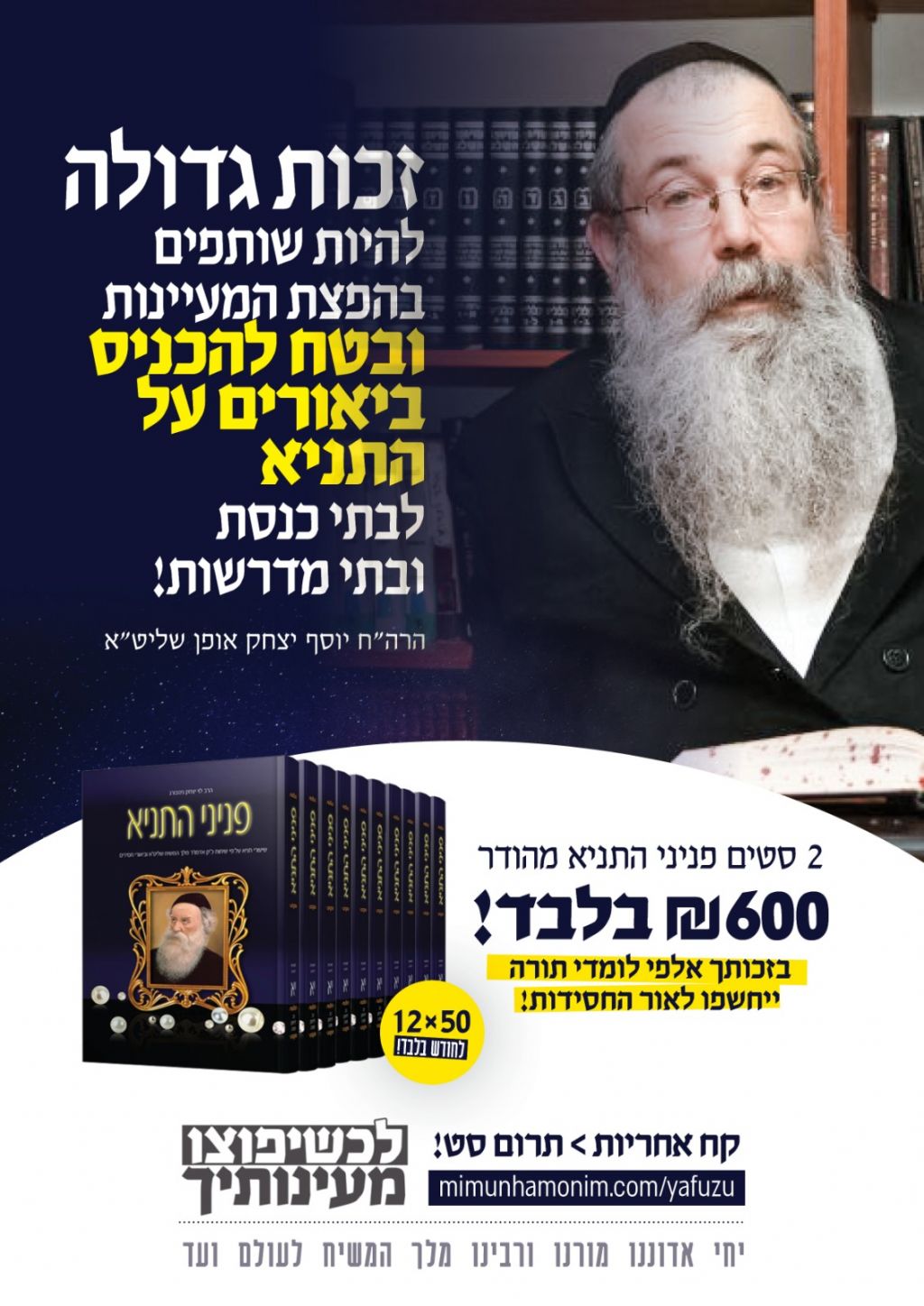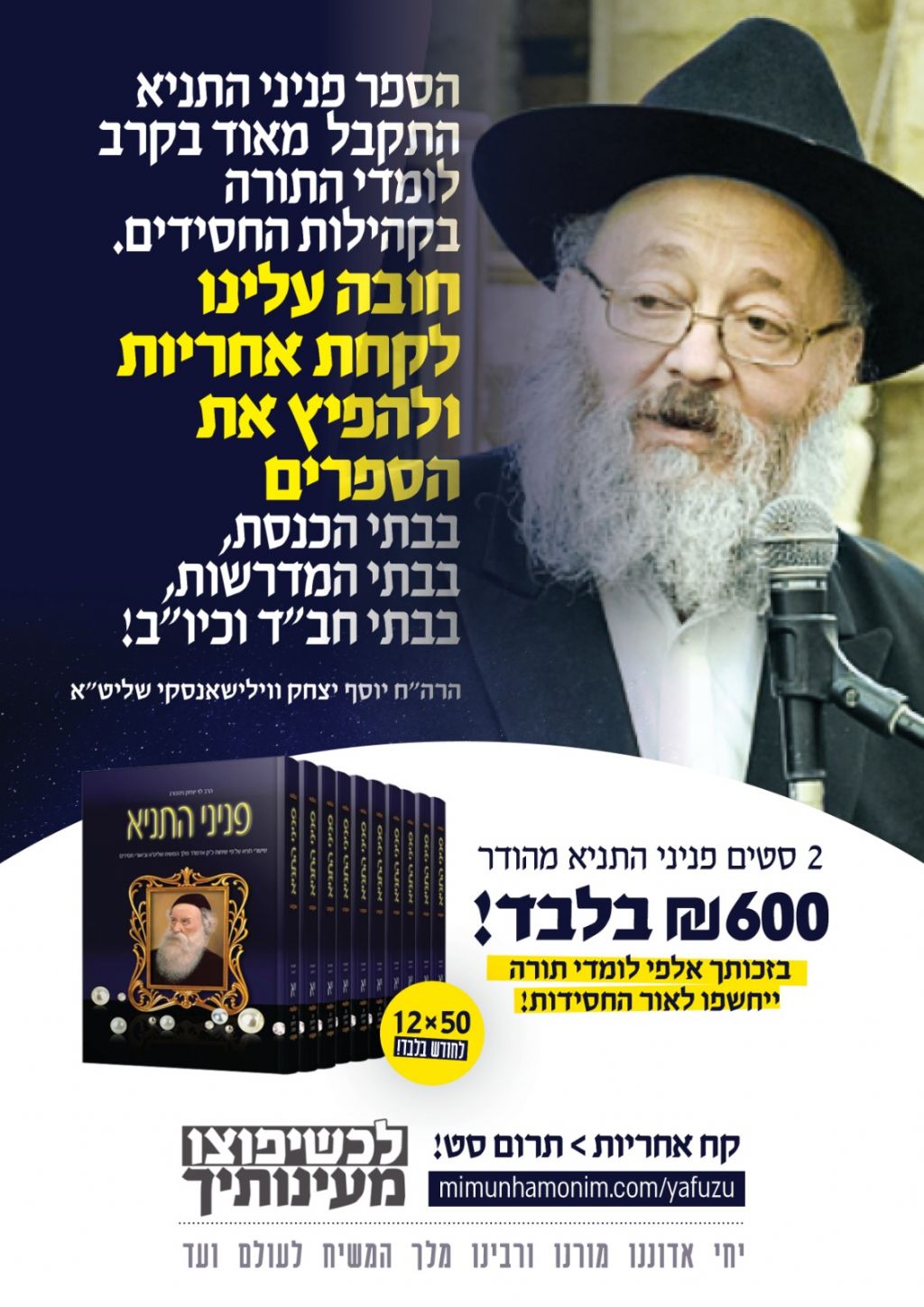 סט פניני התניא. י"ט כסלו. באחריותך. מבצע הפצה רחב של סט פניני התניא מאת הרב לוי יצחק גינזבורג, כל אחד לוקח אחריות ומפיץ.