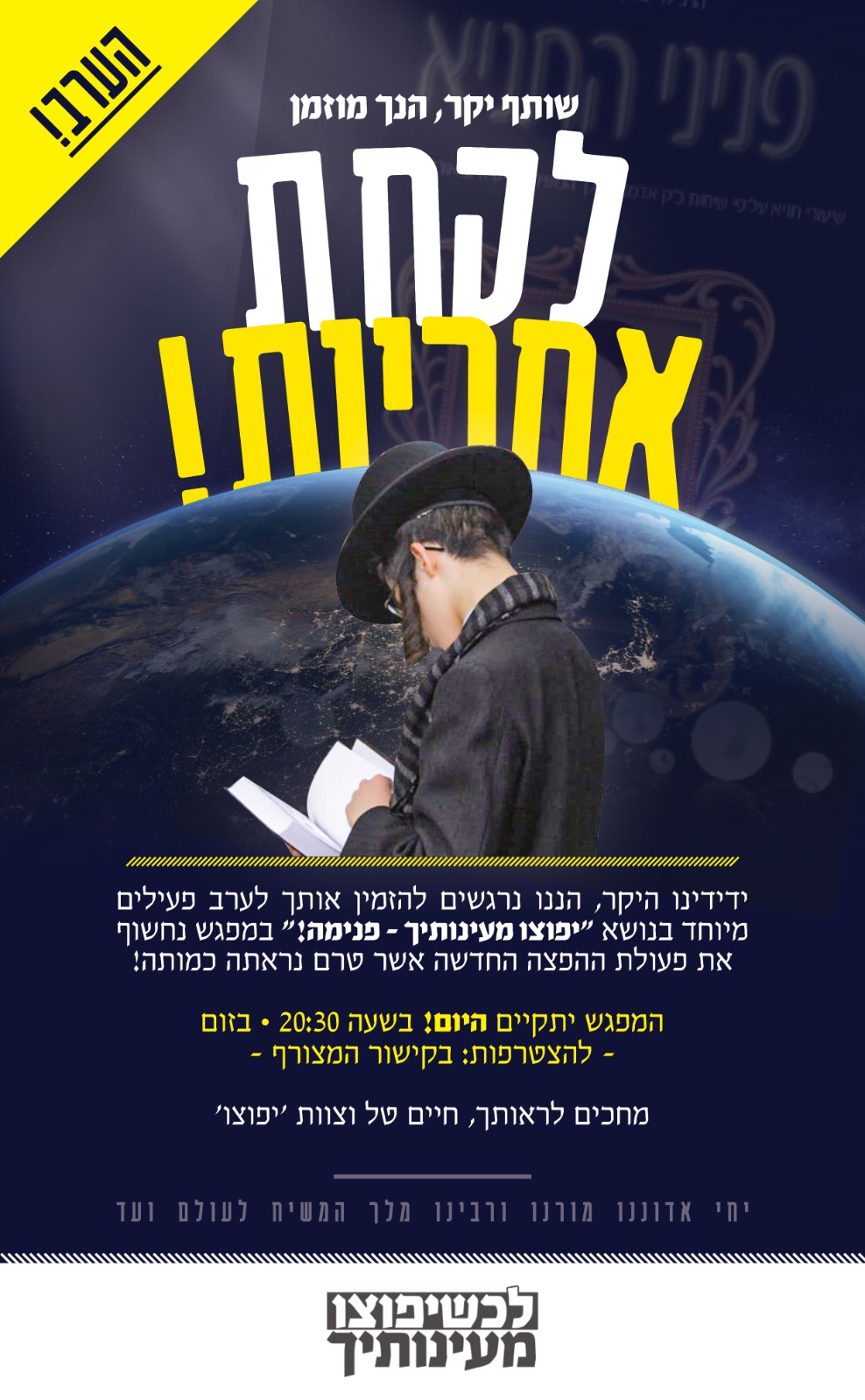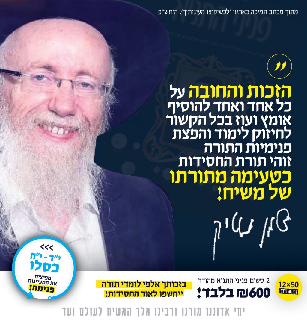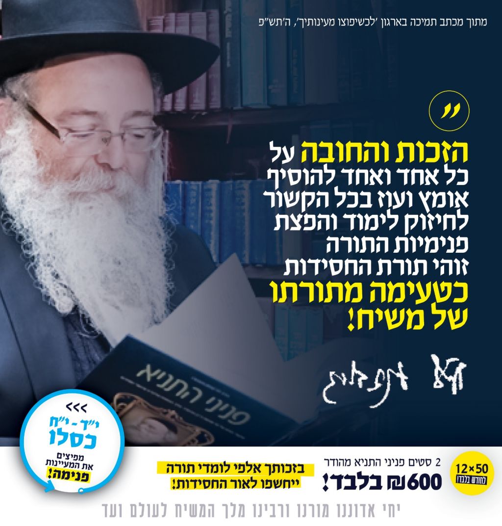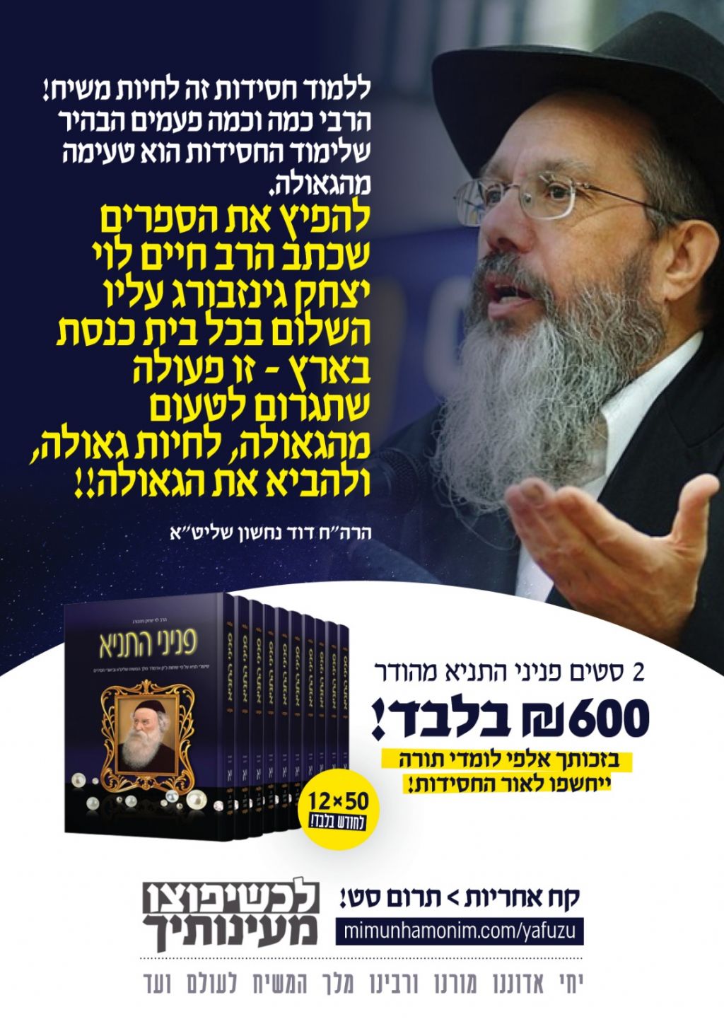 י"ט כסלו. סט פניני התניא. באחריותך. מבצע הפצה רחב של סט פניני התניא מאת הרב לוי יצחק גינזבורג, כל אחד לוקח אחריות ומפיץ