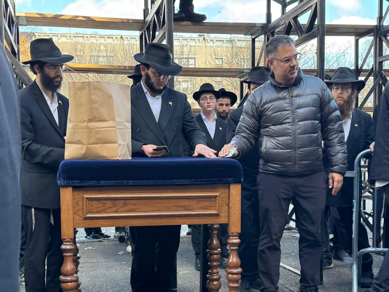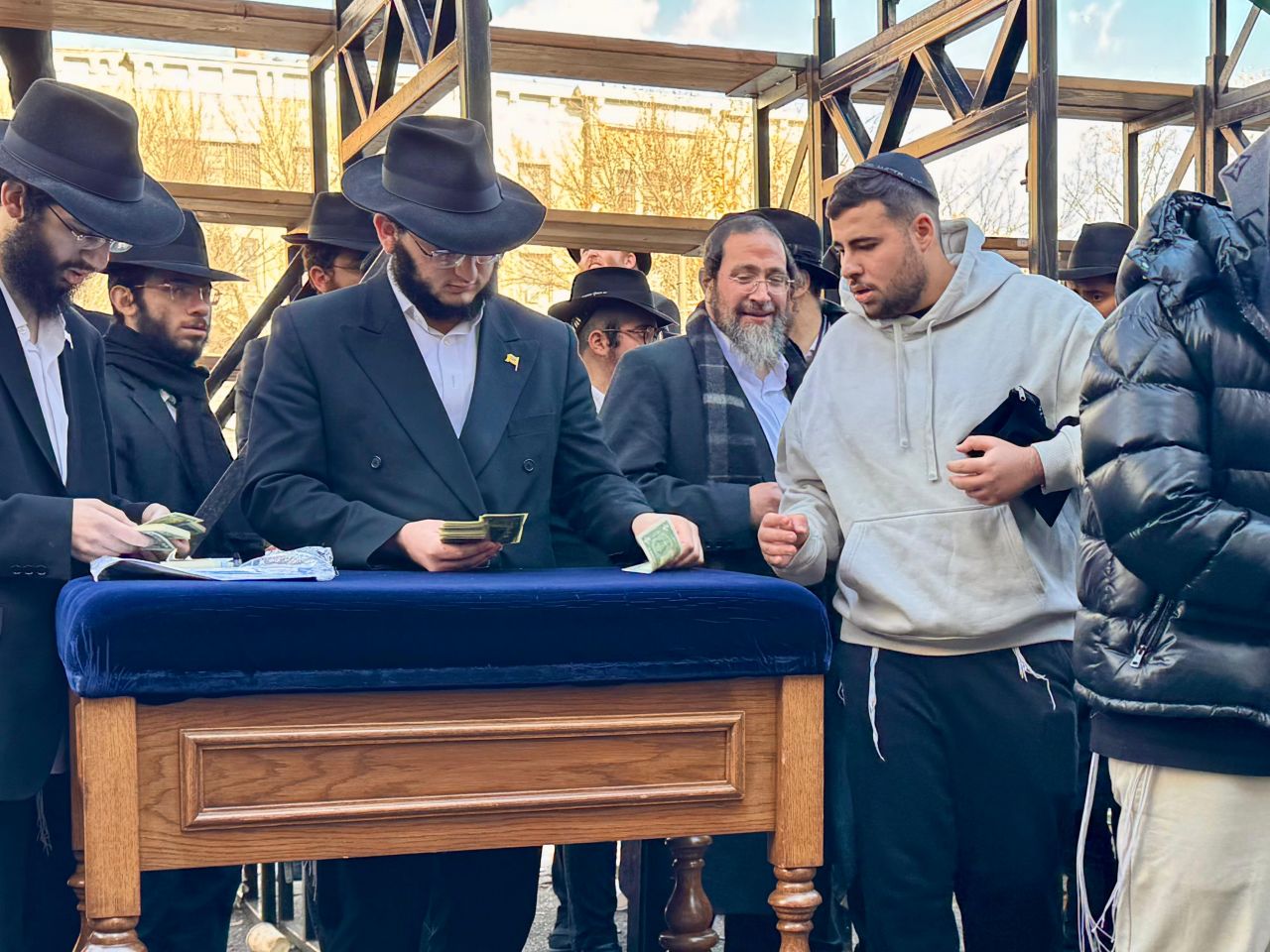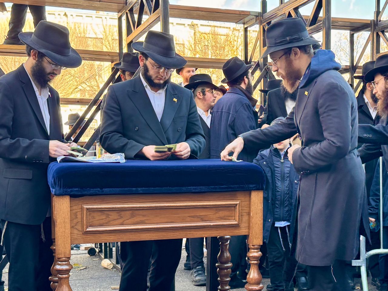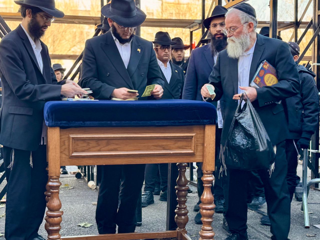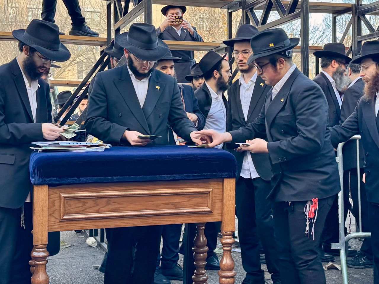 הצלם הת׳ פתחיה אדעליסט תיעד את החלוקה הבוקר בפתחו של 770.