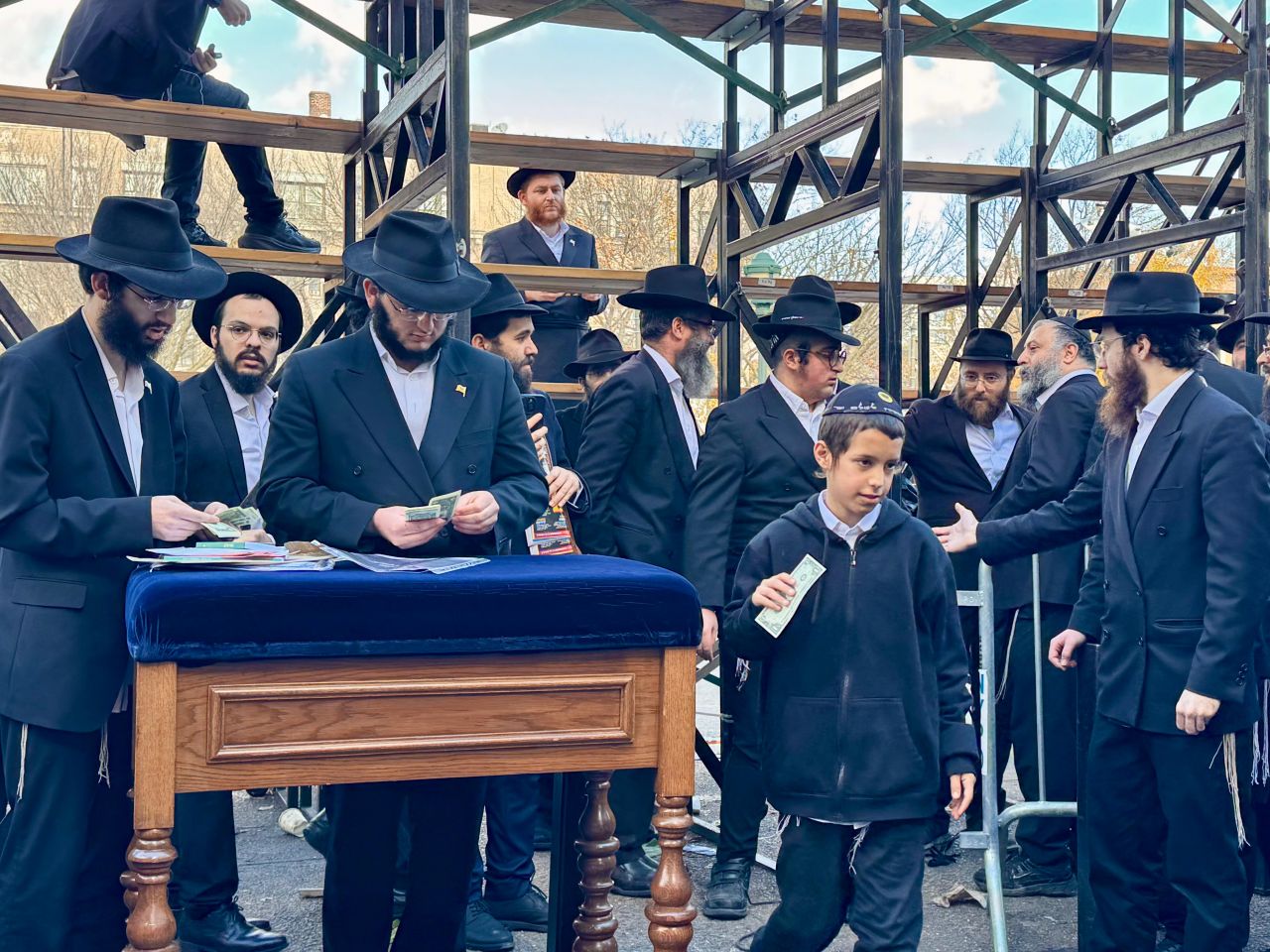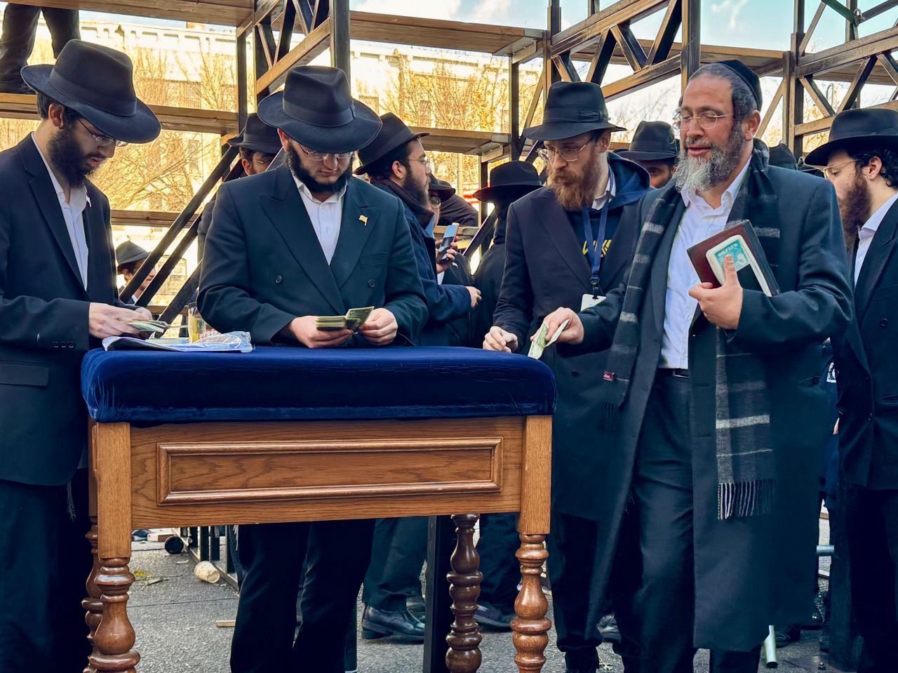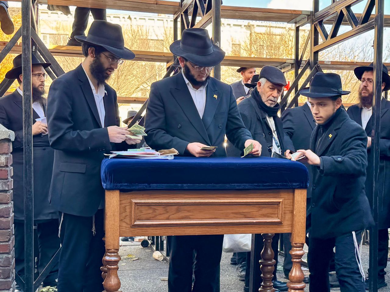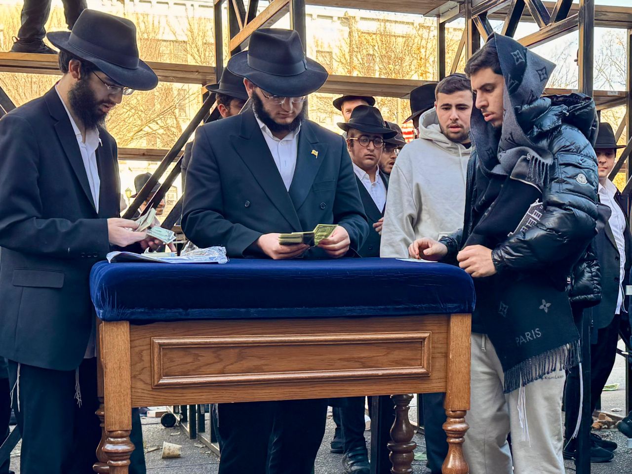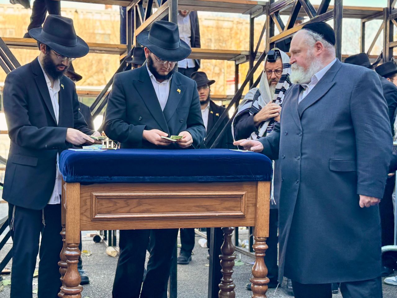 הצלם הת׳ פתחיה אדעליסט תיעד את החלוקה הבוקר בפתחו של 770.