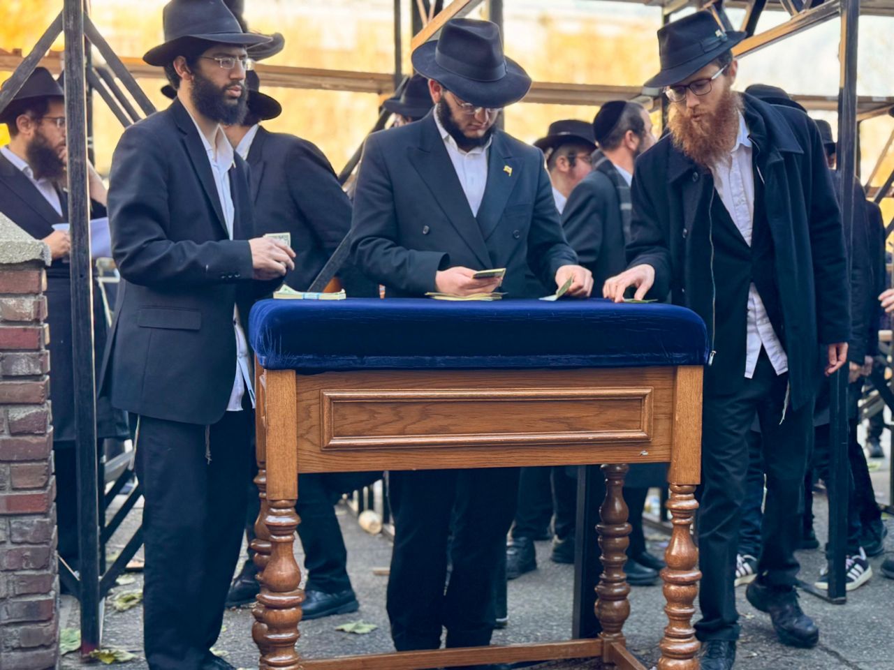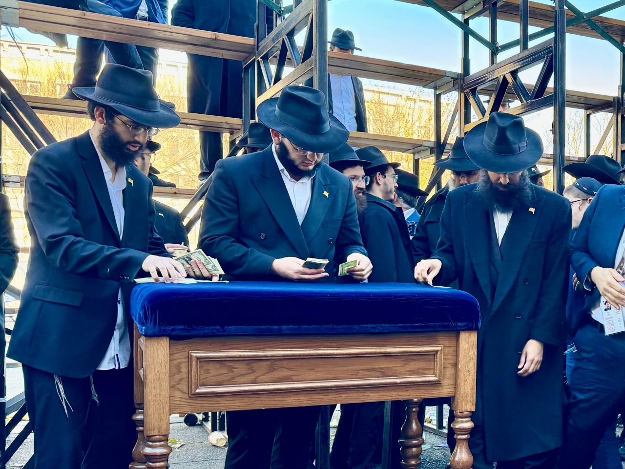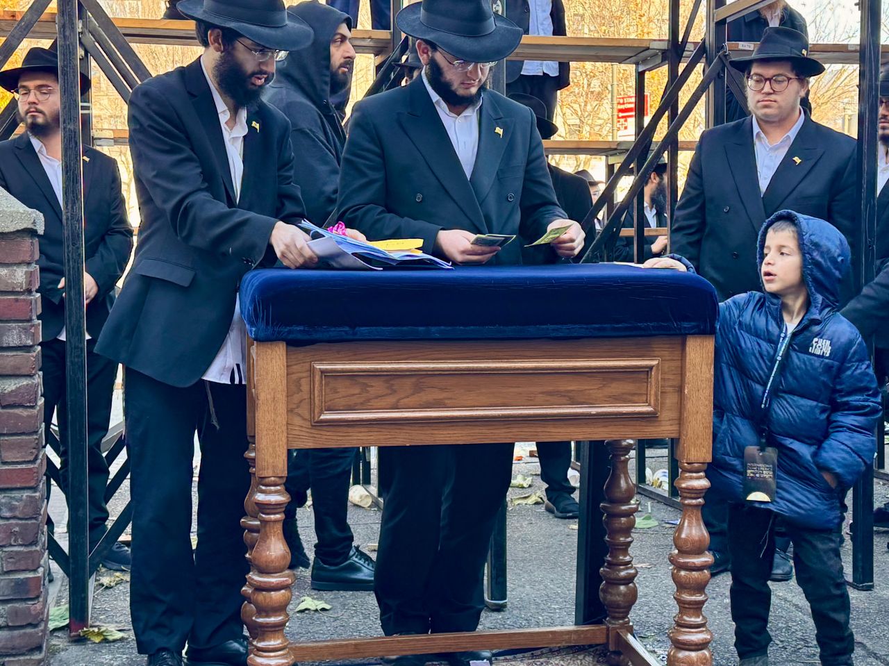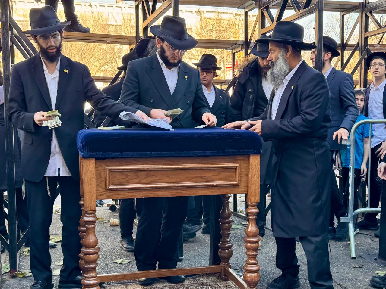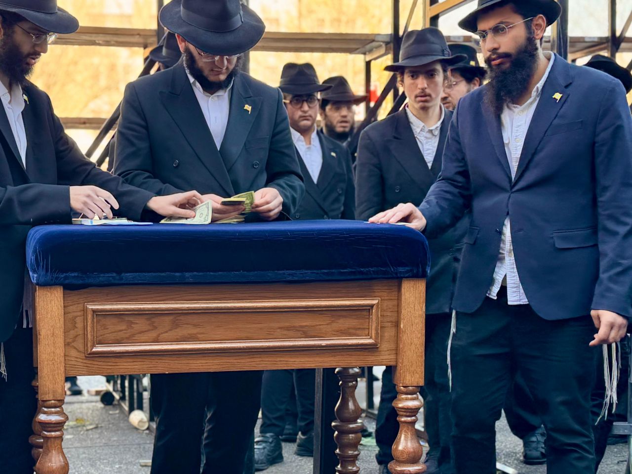 הצלם הת׳ פתחיה אדעליסט תיעד את החלוקה הבוקר בפתחו של 770.