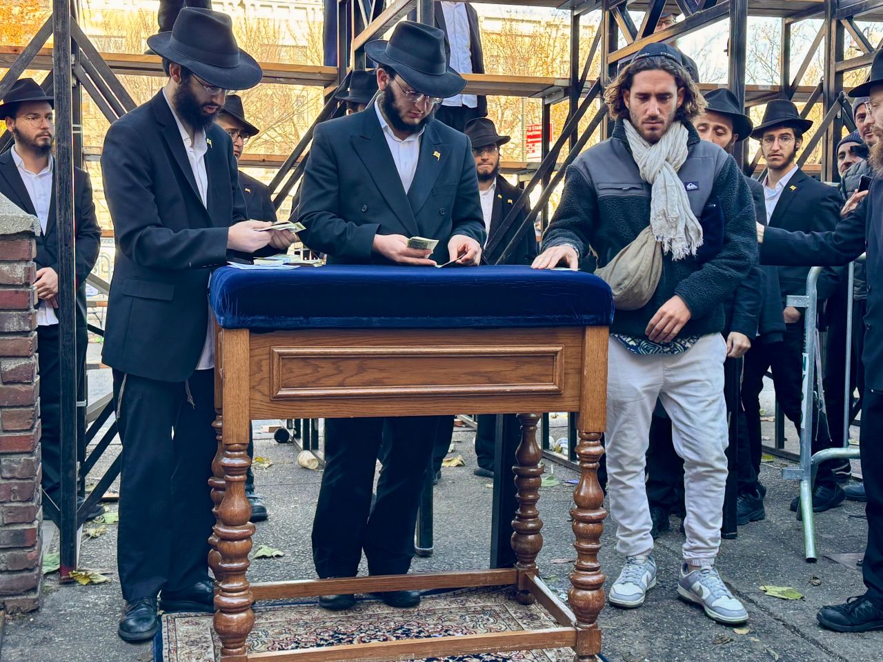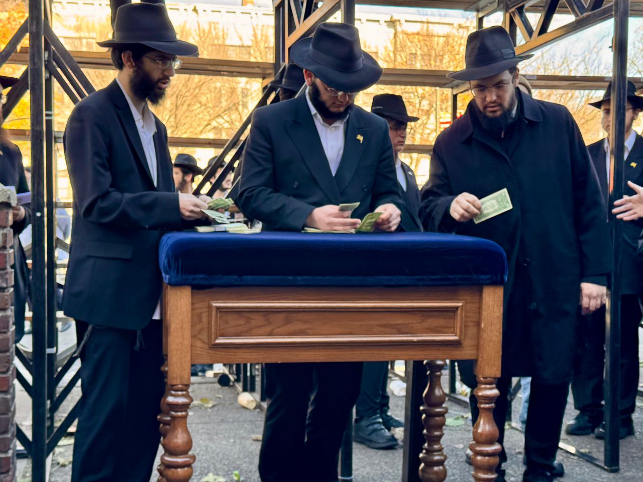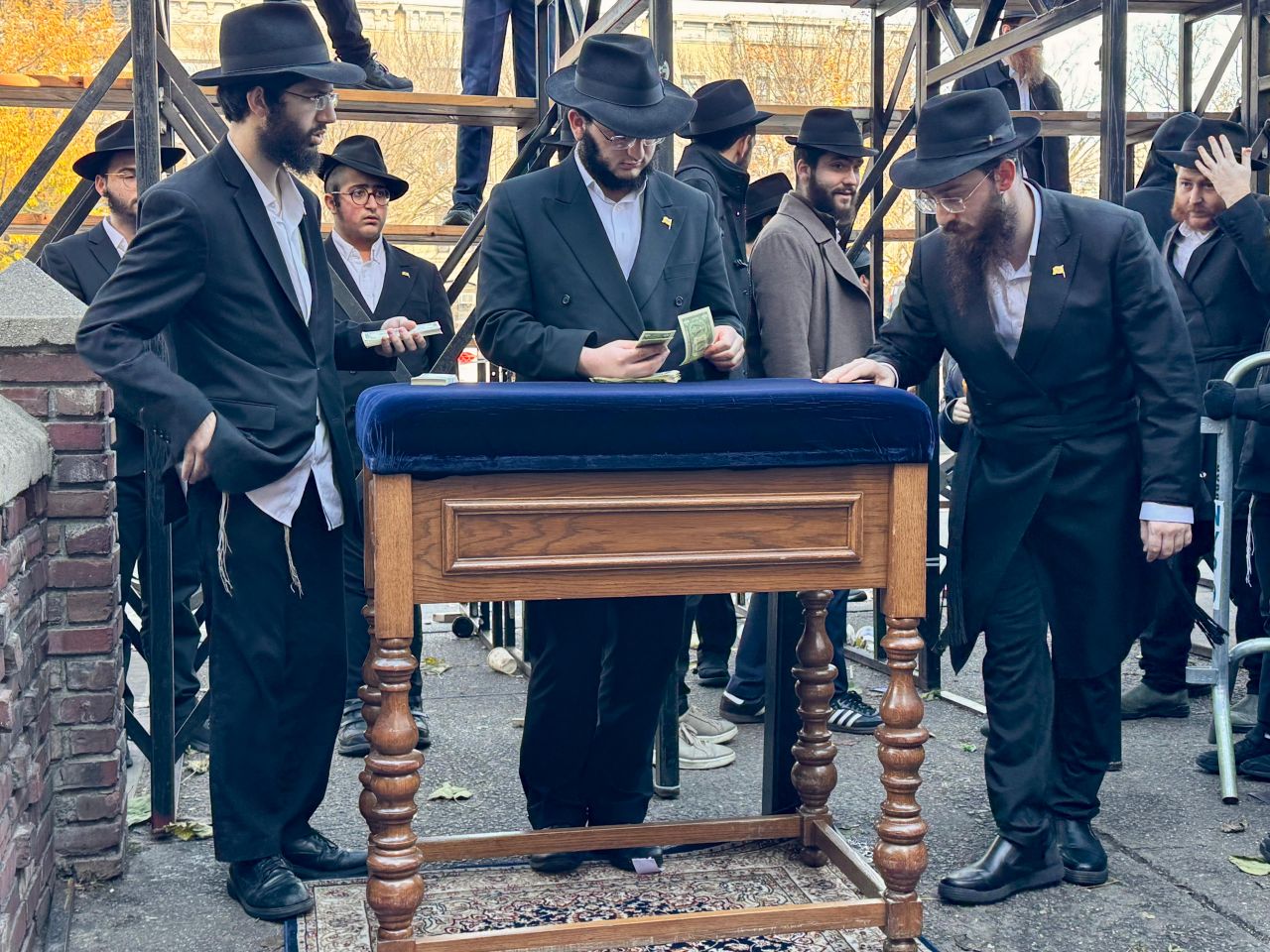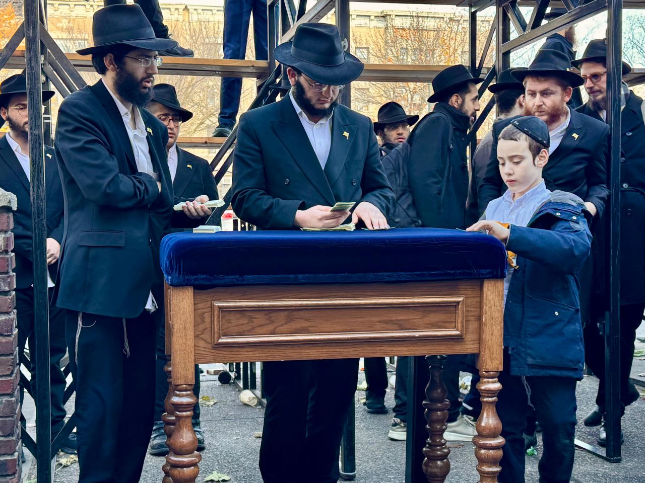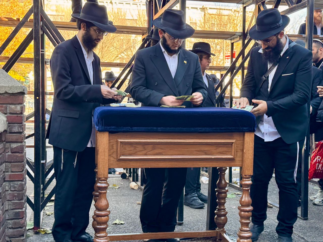 הצלם הת׳ פתחיה אדעליסט תיעד את החלוקה הבוקר בפתחו של 770.