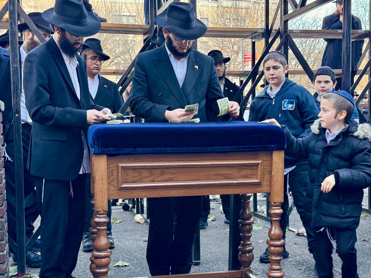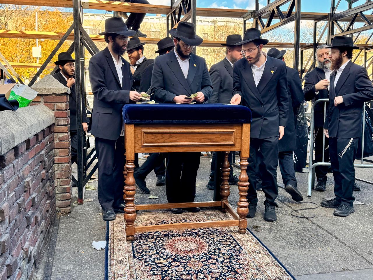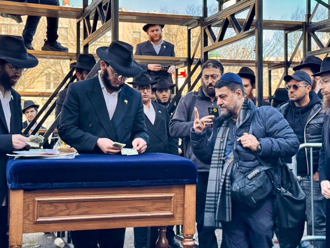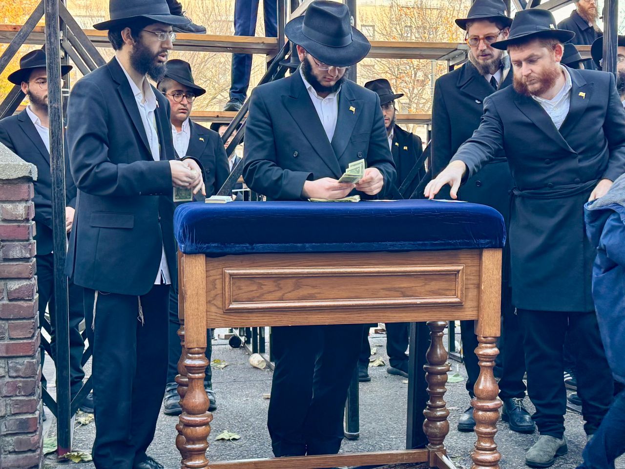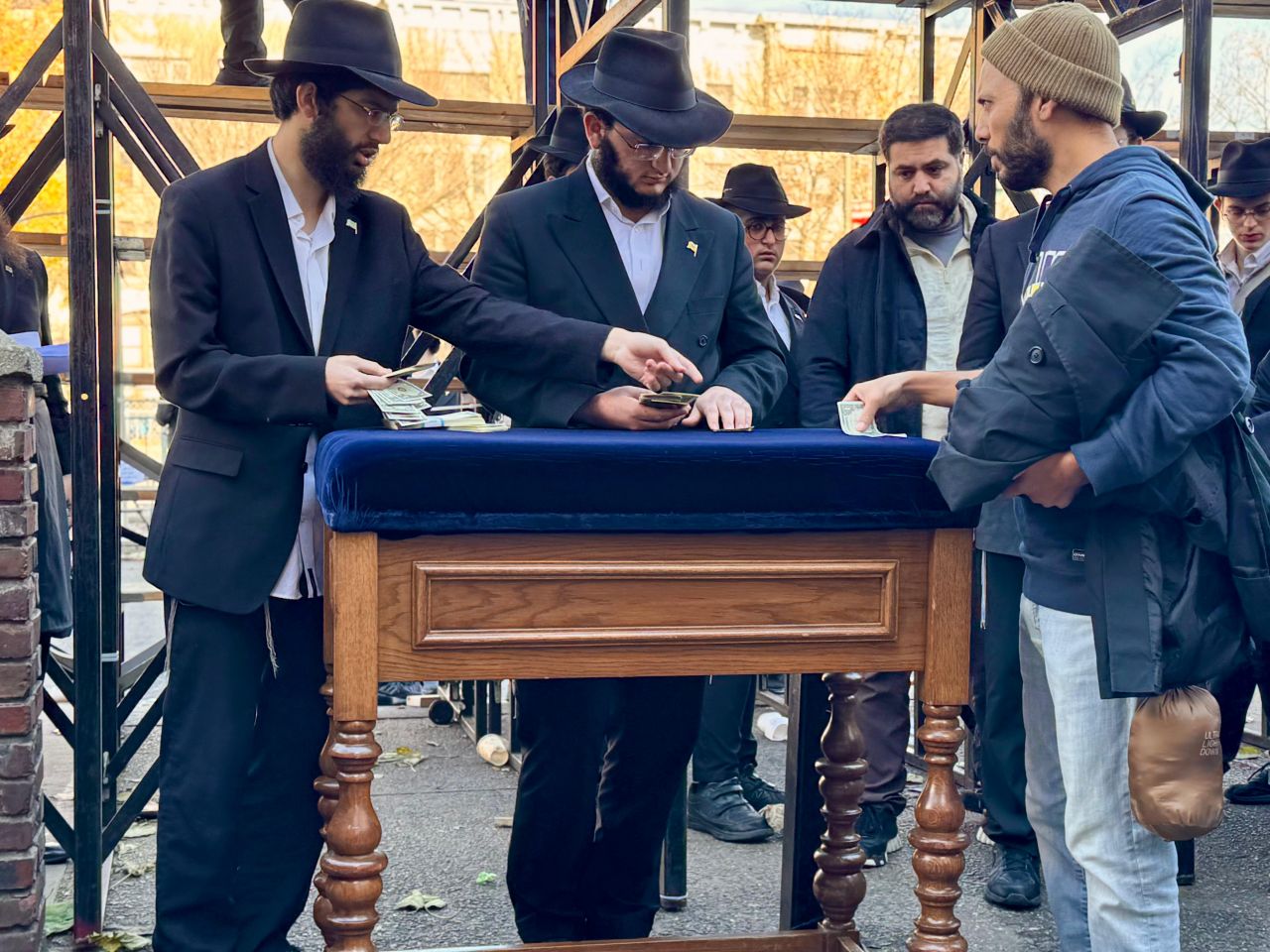 הצלם הת׳ פתחיה אדעליסט תיעד את החלוקה הבוקר בפתחו של 770.